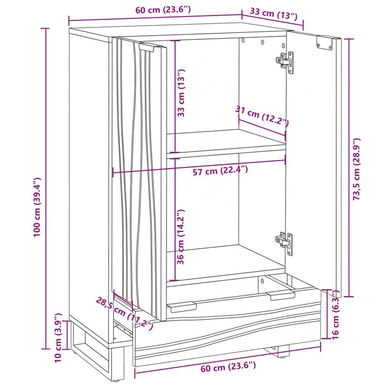 Този шкаф е всичко за стил и практичност в дома ти. Направен е от масивно мангово дърво и инженерна дървесина и е много красиво допълнение. С гладкото, устойчиво на избледняване покритие, той не само ще направи интериора ти по-привлекателен, но и ще ти предостави много място за съхранение на всякакви неща. Представи си този шикозен предмет в трапезарията или всекидневната, удобно скрит зад вратичките, придавайки уютна атмосфера. Комбинацията от дървесни материали му придава стилен вид, който се съчетава прекрасно с модерни и традиционни интериори. Качествени материали: Изработен от масивно мангово дърво и инженерна дървесина, този шкаф е стабилен и изглежда стилно. Проектиран е да издържа на времето, добавяйки изтънченост в стаята. Комбинацията от материали го прави не само практичен, но и малко произведение на изкуството, което подхожда на различни стилове на декорация. Практични решения: С врати и голямо вътрешно пространство, шкафът предлага чудесни възможности за съхранение. Множеството отделения ти помагат да поддържаш ред, така че твоят дом да е чист и подреден. Тази система е отлична за всичко – от съдове за хранене до малки вещи в хола. Удобни функции: Шкафът е с врати, които помагат всичко да е на място. Лесно достъпен е, а външността му е подредена. Неговият изчистен вид се вписва чудесно във всяко помещение, премахвайки визуалния безпорядък от отворени рафтове. Различни приложения: Идеален за твоя хол или трапезария, този шкаф се адаптира към всяка обстановка. Има достатъчно място за всеки, който се нуждае от допълнително пространство, помагайки да запазиш нещата подредени. Независимо дали съхраняваш съдове или семейни игри, той има място за всичко. Сигурност и грижа: Идва с поставка за стена, която предотвратява преобръщане, увеличавайки стабилността в по-натоварени домове. Поддържай шкафа свеж, просто го избърсвай с кърпа и избягвай силни почистващи препарати. Включеното оборудване осигурява безопасно закрепване, давайки ти спокойствие за по-тежките предмети.
