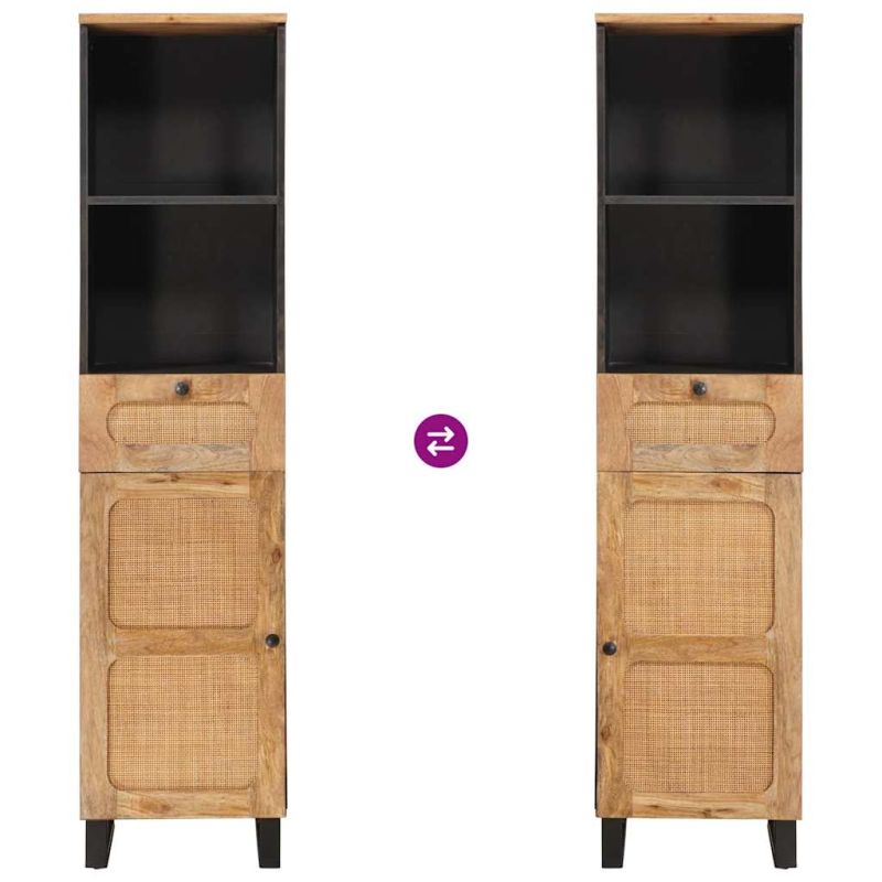 Този модерен шкаф за баня съчетава стил и практичност, идеален за вашите нужди от съхранение. Проектиран за вътрешна употреба, той е с топъл кафяв цвят, който подхожда на разнообразни стилове. Правоъгълната форма му позволява лесно да се интегрира в малки и големи бани, идеален за тези, които искат допълнително пространство. С масивна дървесина от манго, добавя натурална нотка и е изключително здрав. Масивна дървесина от манго: Изработен от масивна дървесина от манго, шкафът предлага впечатляваща издръжливост и красив завършек, който подчертава естествения вид на дървото. Материалът е устойчив на влага, предлага дълготрайна употреба в банята. Обширни модули за съхранение: С обширни рафтове, шкафът ефективно организира вашите тоалетни принадлежности и хавлии. Продуманият дизайн осигурява лесен достъп и оптимизирано съхранение, повишаваща полезността му. Дълготрайна конструкция: Изработен за ежедневна употреба, здравата конструкция гарантира, че шкафът ще бъде част от банята ви години наред. Качественото му изработка се вижда във всеки детайл. Вътрешна употреба: Проектиран специално за баня, този шкаф се вписва в различни интериорни стилове. Универсалният му дизайн е подходящ за всяка баня—класическа, съвременна или еклектична. Лесна поддръжка: Поддържайте шкафа свеж; просто го избърсвайте с влажна кърпа, за да задържите белия му вид. Минималната поддръжка прави шкафа елегантен и практичен.,