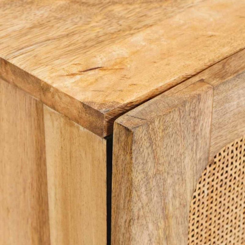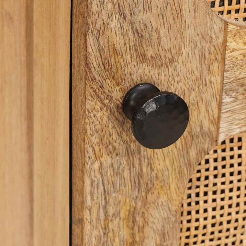 Този шкаф е елегантен мост между стил и функционалност и е основен елемент за всеки модерен дом. Просто и стилно проектиран, той е идеален за всяка трапезария или хол, лесно се вписва в разнообразни интериори. Изработен е от здраво мангово дърво и предлага много място за основните трапезарийни принадлежности, помагайки да поддържате около себе си организирано и изискано. С изискан външен вид, който е същевременно красив и ненатрапчив, този шкаф балансира между форма и функция. Материали: Изработен е от масивно мангово дърво, което осигурява здравина и приятен визуален ефект. Този материал съчетава здрава основа с естествена топлина. Инженерната дървесина допълва основния материал, като прави шкафа лек, но здрав, което увеличава удобството и адаптивността му. Тези материали гарантират дълготрайна употреба и лесна поддръжка. Включени компоненти: Шкафът е с врати с панти, които се отварят плавно за лесен достъп до съхранените вещи. MDF задната част осигурява приятен вид от всяка страна. Квадратните метални крака предлагат стабилност, осигурявайки поддръжка на вашите вещи. Дръжките добавят елегантност, съчетавайки функционалност с стил. Характеристики / Функция / Дизайн: Шкафът е проектиран с акцент на простота и полезност, отразявайки съвременния дизайн. Предлага ясни линии и минимализъм, идеален за актуалните интериори. Правоъгълната му форма предоставя практичност, а контрастните текстури привлекателно съжителстват в различни стаи. Препоръчителни приложения: Перфектен е за трапезарии, дневни и входове, осигурявайки достатъчно пространство за организиране на съдове, ленени изделия или декорации. Неговият универсален дизайн го прави подходящ за различни среди, независимо дали е за натоварена трапезария или стилен апартамент. Грижа и поддръжка: Изисква минимална поддръжка, което го прави идеален за всеки дом. Почистването с суха кърпа предотвратява натрупването на прах, а избягването на агресивни химикали запазва естественото покритие. Редовната грижа осигурява дълготрайна употреба и красота на шкафа.