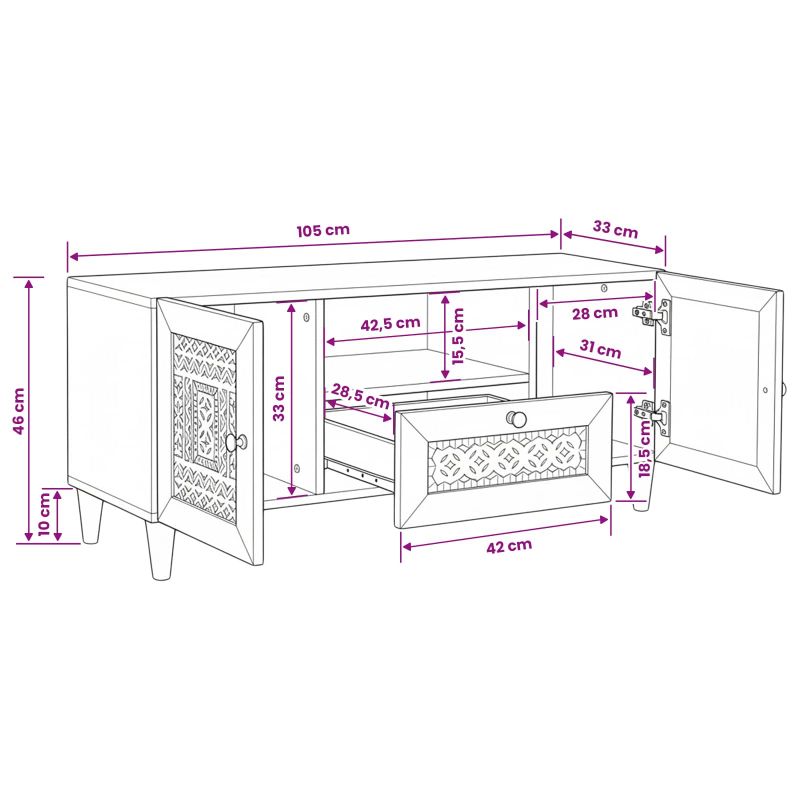 Тази многофункционална стенна TV секция е супер за съвременни жилища. Със своите елегантни, прости линии, тя е централна точка в хола и предлага много място за организирано съхранение на електроника и аксесоари. Конструкция от инженерна дървесина С нея, телевизионната секция е стабилна и надеждна за всички ваши развлечения. Модерният й вид с чисти линии я прави универсална и идеална за съвременните интериори. Дизайн, спестяващ пространство Тази стенна телевизионна секция е проектирана да заема минимално място, придавайки елегантен и повдигнат вид, който поддържа дневната ви чиста. Идеално е за малки и големи пространства, притегляйки усещане за открито. Обширни опции за съхранение Чекмеджетата с дръжки предлагат организирано съхранение на медийни устройства и DVD-та. Лесно ще работите с тях, така че всичко да е под ръка. Лесни инструкции за сглобяване Инструкциите за сглобяване са ясни и изискват минимални инструменти. Не забравяйте, че винтове и дюбели не се включват, и е добре да се консултирате с професионалист преди монтажа. Многофункционална употреба и разположение Подходяща за вътрешна употреба, особено за холове, тези ТВ единици предлагат многофункционално съхранение целогодишно. Конструкцията от инженерна дървесина осигурява дълготрайност, а стилът е отлично съчетан с променливи сезони.