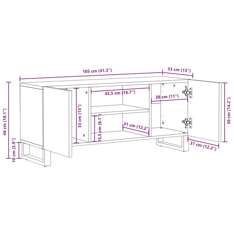 ТВ шкаф Кафяво 105 x 33 x 46 см Солидно мангово дърво