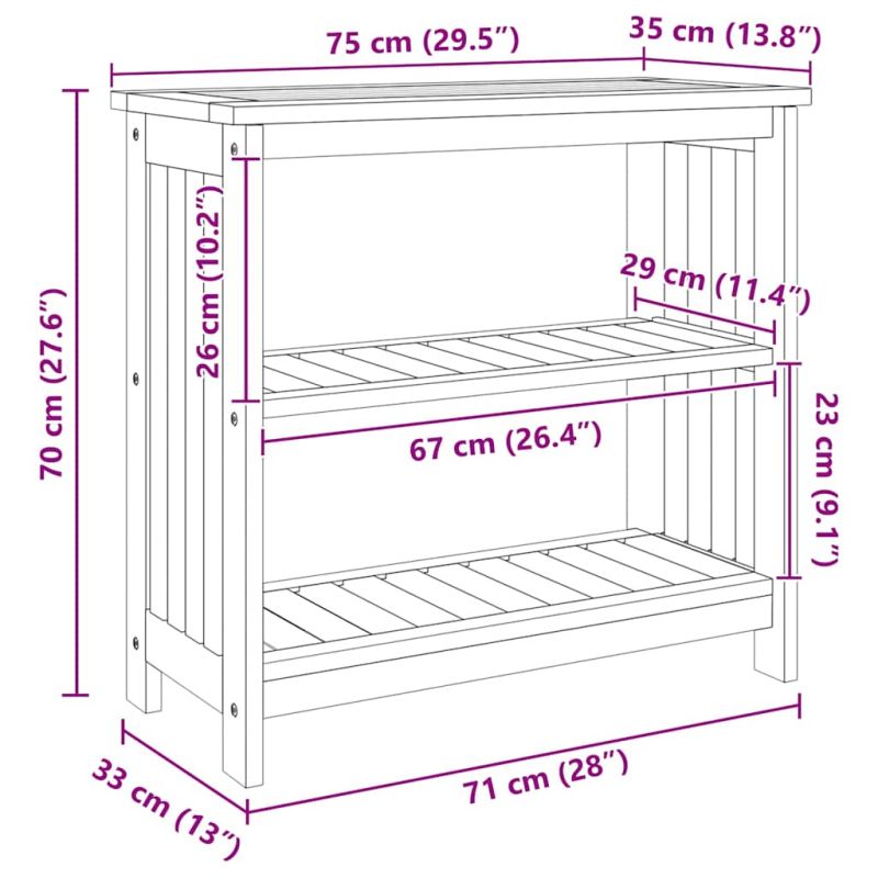 Градинско шкафче с рафт със съхранение Естествен 75 x 35 x 70см