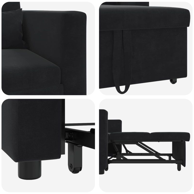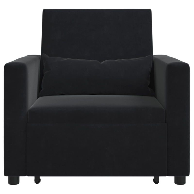 Разтегателен диван с единично легло с колела Черно Кадифе