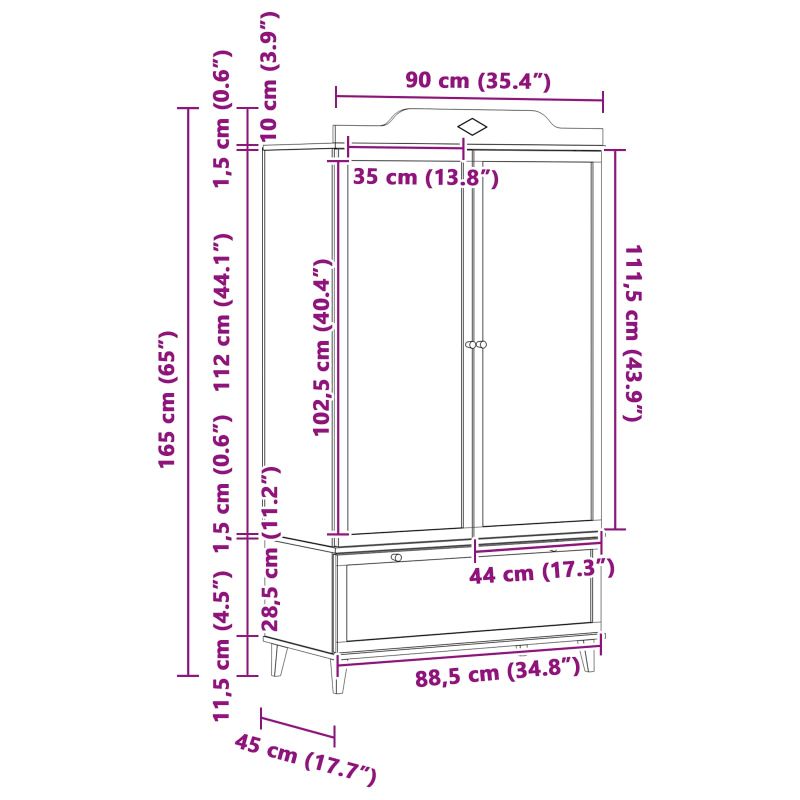 Този spacious гардероб комбинира полезност и стил с модерен дизайн, идеален за всяка детска стая. Предлага достатъчно място за дрехи, играчки и др., като с това притежава изчистен правоъгълен вид с размери 90 x 45 x 165 см, удобно за различни пространства. Вратата с дъска за писане подхранва креативността и персонализацията, правейки организацията забавна за малките. Масивна инженерна дървесина: Изработен от здрава инженерна дървесина, известна с дълготрайността си. Този материал запазва добрия вид и осигурява дълго ползване. Гладката текстура стои добре на съвременния дизайн на гардероба. Врата с дъска за писане: Сложена в уникалния дизайн, гардеробът има интерактивна дъска – супер функционално, позволява на децата да рисуват или да записват неща направо на него, комбинирайки полезност и персонализация. Просторен интериор: С достатъчно място за съхранение, без проблем побира различни предмети. Вратите с панти разкриват обширно отделение за закачане на дрехи и рафтове за подредени вещи. Перфектен за детска стая: С издръжливата си конструкция от инженерна дървесина и уникалната дъска за писане, този гардероб е страхотно допълнение за всяка детска стая. Комбинира функционалност с нещо забавно, насърчавайки децата да бъдат организирани и креативни. Лесна поддръжка: Почистването на гардероба е бързо и лесно – просто избършете с суха кърпа, за да бъде във върхова форма. Този подход за поддръжка помага да се запази привлекателността без сложни грижи.