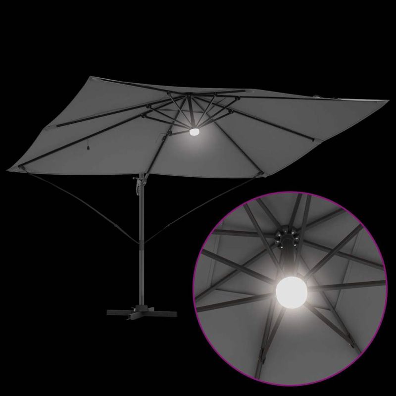 Кантилеверният чадър Рома е точно това, от което се нуждаете навън. Комбинира модерен дизайн с практични функции. Със своите чисти линии и минималистичен вид, той е страхотен за всяка градина или тераса. Осигурява хладна сянка в слънчеви дни, разкошен и стилен. Няма значение дали се наслаждавате на почивка покрай басейна или организирате градинско парти, очевидно е, че този чадър е удобен и за всякакви поводи. Най-вече е идеален, когато искате да имате сянка, но без да нарушавате гледката. Универсален плат: Изработен от здрав полиестер, чадърът е UV-устойчив, така че цветовете остават ярки и защитават от слънцето. Тъканта издържа на времето и е идеална за многогодишна употреба. Тя е и лека, което прави чадъра лесен за преместване в различни условия навън. Удобен механизъм за въртене и накланяне: С 360° въртяща база и наклоняем капак, този чадър лесно се наглася според светлината. Проектиран е за ваше удобство, за да можете да настроите ъглите, както ви е нужно. Независимо дали просто се отпускате или ядете навън, удобно и хладно е! LED осветление: С LED ленти, този чадър създава уютна вечерна атмосфера. Използва слънчева енергия, без да харчи много електричество, и прави вечерите навън толкова удобни и чаровни. Лесен за работа: С ръчната манивела, отварянето и затварянето на чадъра е много просто. Това е идеално за деца и възрастни. Заключващият механизъм го държи стабилен, дори в силен вятър. Стилен дизайн: С алуминиев корпус, кантилеверният дизайн не изисква централна стъбло, което прави всичко по-удобно и красиво. Модерният му стил лесно се интегрира в съвременни градини, а здравата рамка осигурява всичко необходимо за дълготрайна надеждност. Дръжте децата далеч от мястото на сглобяване по време на сглобяването. Уверете се, че този продукт е напълно сглобен, както е показано на илюстрацията, преди да го използвате. Уверете се, че продуктът винаги е поставен на равна повърхност. Не се поема отговорност за щети или наранявания, причинени от неправилна употреба на този продукт. Дръжте ръцете си далеч от механизма за сгъване и движещите се части, за да предотвратите възможни наранявания. Никога не използвайте или отваряйте този чадър без подходяща основа. Не използвайте този чадър при силен вятър и дъжд. Неспазването на това изискване може да доведе до наранявания и/или повреди. Винаги затваряйте чадъра и поставяйте капака, ако вятърът надвиши „умерена бриза“, ако вали сняг или дъжд. Продуктът съдържа малки части, които могат да представляват риск за малки деца. Дръжте малките части далеч от деца. Този продукт не е играчка! Уверете се, че децата не използват чадъра, навеса или основата за игра или катерене. Не използвайте открит огън (например барбекю или грил) под или в непосредствена близост до този продукт. Закрепете продукта с въжета и тежести. Ако скоростта на вятъра надвиши 6 м/сек или при силен дъжд, внимателно махнете продукта, сгънете го, закрепете го и го поставете на безопасно място. Подготовка за употреба. Преди употреба проверете дали вашата беседка, палатка, чадър или павилион не са повредени (изкривени метални елементи, разкъсана тъкан). В случай на повреди не използвайте продукта. Неспазването на тези указания ще доведе/може да доведе до повреда. Гаранция: Само продукти, използвани в съответствие с инструкциите на производителя, по
