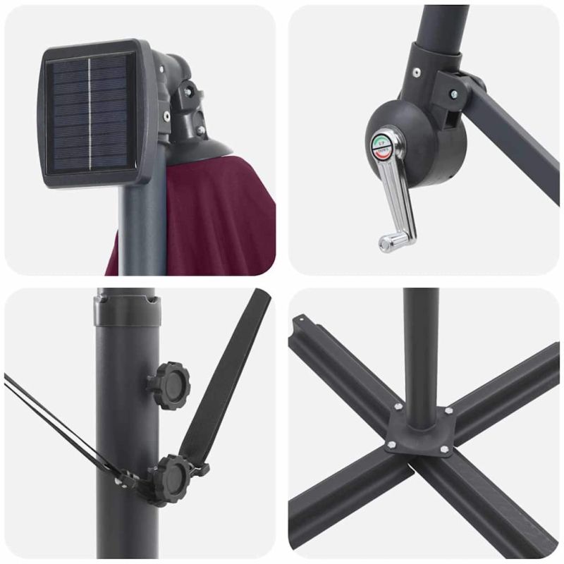 Този Кантилеверен бананов чадър е стилно допълнение за всяко открито пространство, предлагащо както стил, така и функционалност. Неговият съвременен дизайн с чисти линии и минималистичен вид го прави отличен избор за съвременни места. Без значение къде се постави - на балкон, в градината или на терасата, чадърът осигурява удобна и защитена сянка. Съвременен дизайн: Кантилеверният бананов чадър добавя стилен акцент към всяко открито пространство. С шиков и ненатрапчив дизайн, той лесно се вписва в различни декорации, като предлага функционалност и естетическа привлекателност. 360° регулируемост: Накланящите и завъртащи механизми на чадъра предлагат оптимална гъвкавост. Можете лесно да настроите навеса, за да постигнете перфектния ъгъл на сянка за максимална защита от слънцето, отразявайки промените в позицията на слънцето през деня. Качествени материали: Изработен е от полиестер и алуминий, този чадър е проектиран да устои на различни метеорологични условия. UV-устойчивият плат предотвратява избледняване и увреждане от същинското слънце, осигурявайки, че чадърът остава ярък години наред. Вградени функции: С LED ленти, чадърът е полезен и през нощта. Тези соларни лампи създават уютна атмосфера за вечерни събирания, нежно осветявайки пространството и акцентирайки на стилния дизайн. Сигурност и удобство: Механизмът за заключване поддържа чадъра безопасно отворен по време на употреба. Това предотвратява случайното затваряне, позволявайки на потребителите да се наслаждават на безпроблемна сянка. Ръчната настройка осигурява контрол и надеждност. Този продукт не трябва да се изхвърля заедно с други битови отпадъци в Европейския съюз.