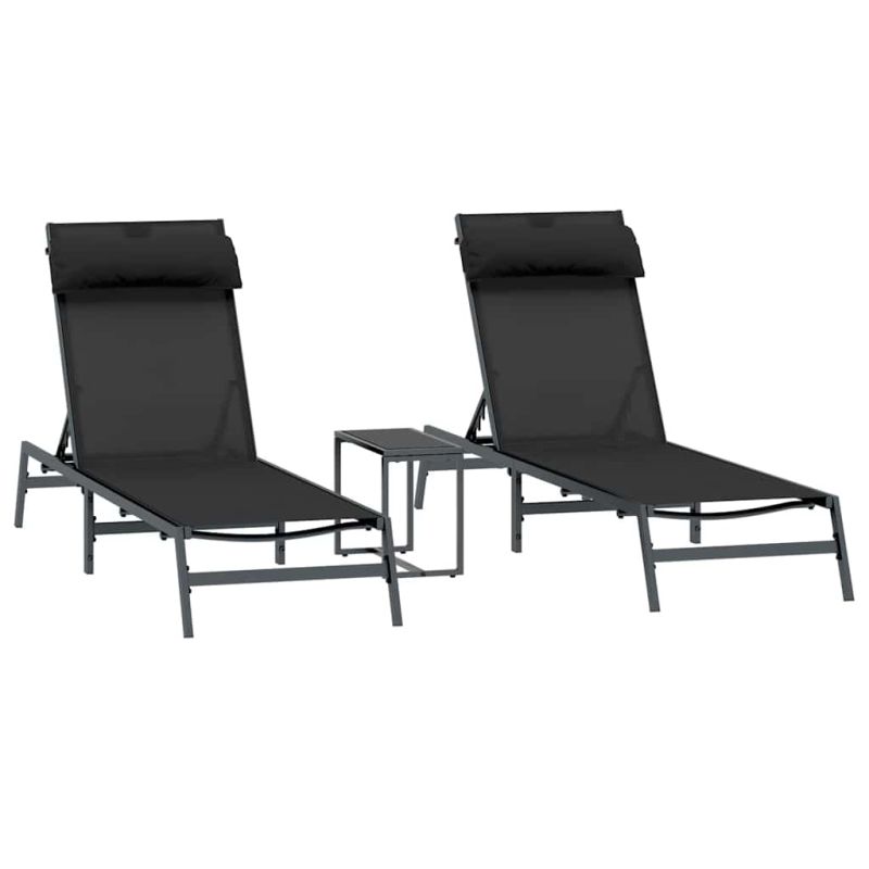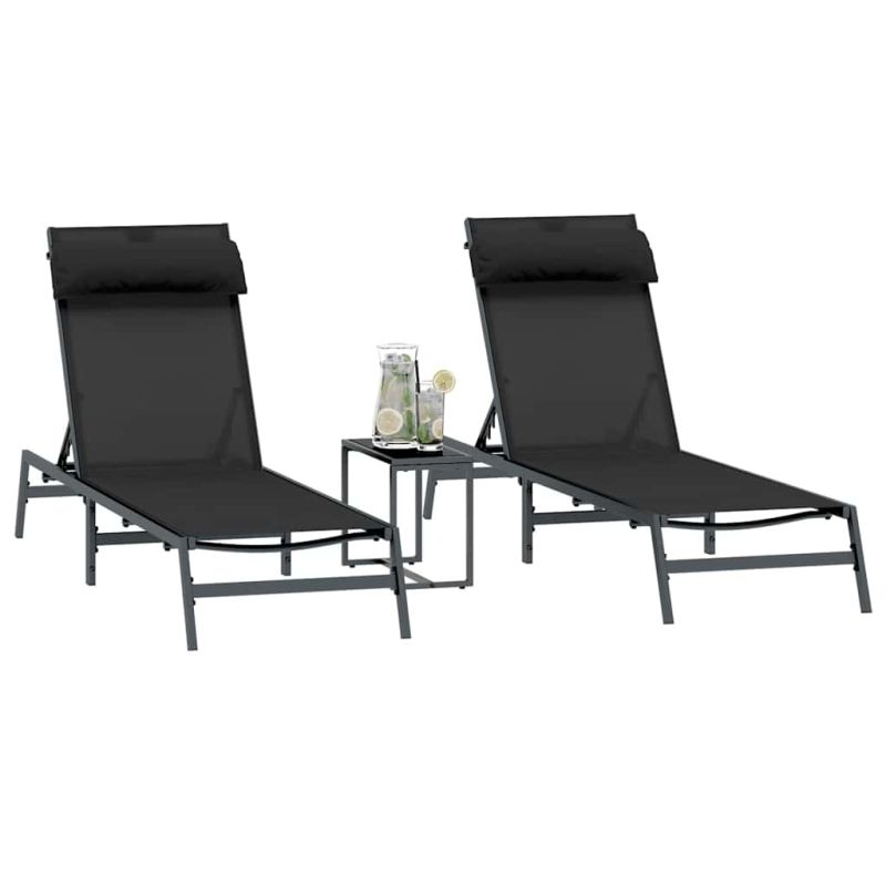 Шезлонги 2-човек 3 pcs Черно и антрацит Стомана