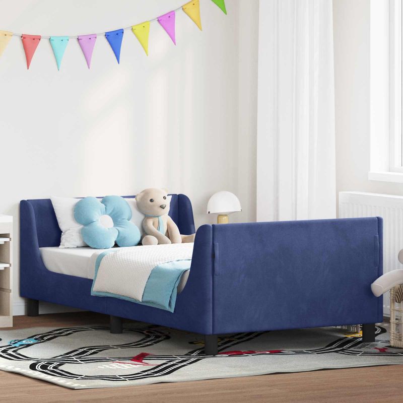 Начало Мебели Легла и аксесоари Легла и рамки за легла Легло за деца с табла Полицейско синьо 90 x 200 cm Кадифе