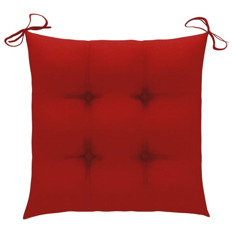 Градински столове с червени възглавници 4 бр тиково дърво масив
