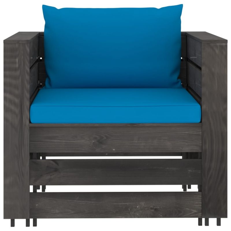 Градински лаундж комплект 2 части възглавници сива импрегнация