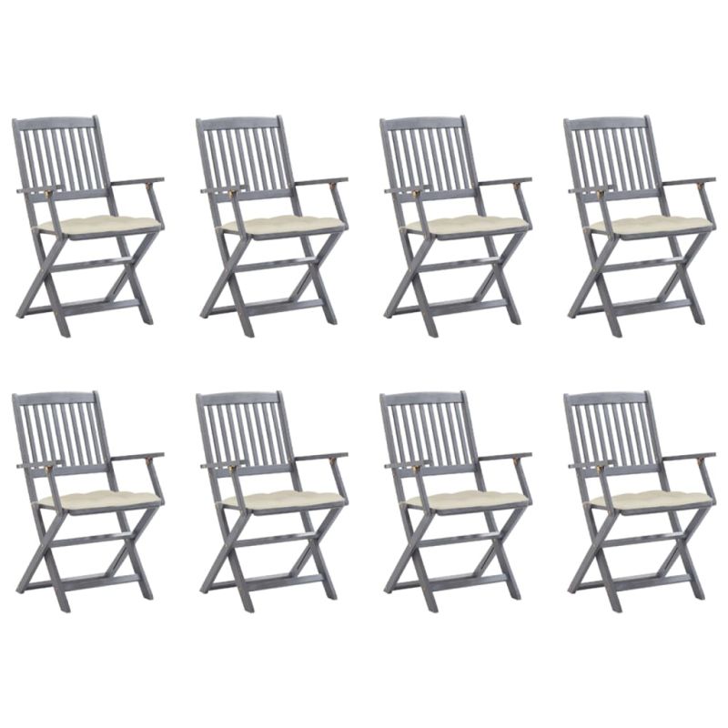 Сгъваеми градински столове, 8 бр, с възглавници, акация масив