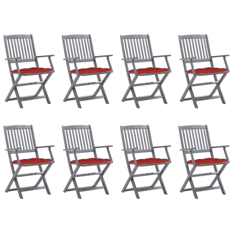 Сгъваеми градински столове, 8 бр, с възглавници, акация масив