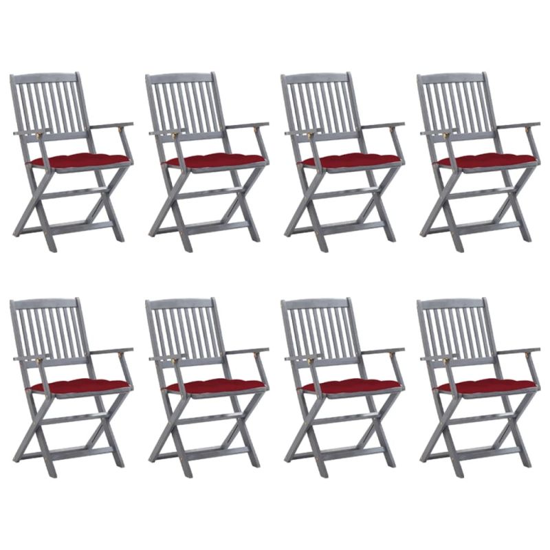 Сгъваеми градински столове, 8 бр, с възглавници, акация масив