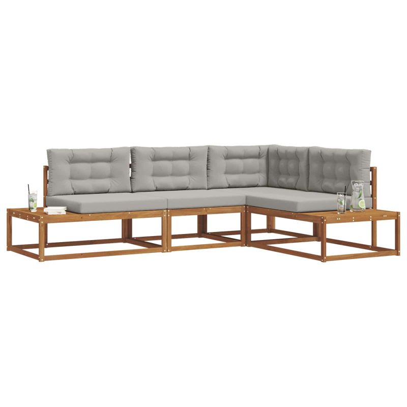 Този комплект за ъглов диван за открито променя начина, по който се отпуснете на открито, с модерен дизайн и здрава конструкция. Перфектен за тераси, градини или балкони, диванът предлага стилно място за почивка или забавление. Със своя модерен и семпъл вид, той съчетава функционалност с елегантност. Масивната акациева дървесина не само изглежда страхотно, но и осигурява здраво решение, което е устойчиво на времето. Превърнете вашето открито пространство в приветливо място, идеално за готови за лятото с приятели или спокойно време в уединение. Масивна Акациева Дървесина: Здравия масив акация, от който е направен този диван, гарантира устойчивост и дълготрайност. Красивите натурални тонове идеално се вписват в всяка открита среда. Иновативен Дизайн: Модерният ламелен стил не само че е атрактивен, но и позволява на въздуха да циркулира за по-голям комфорт дори в горещите дни. Гъвкава Подредба: Секционната конструкция предлага множество възможности за настройка на местата, идеален за всякакви събития, от градински партита до лични моменти за релакс. Инструменти и Инструкции: За сглобяването са нужни само двама души и отвертка, а инструкциите са ясни. Така настройката е бърза и лесна, и можете повече да се наслаждавате на outdoor пространство. Препоръки за Използване: Идеален за всякакви градински и терасови участия, този диван ще направи всяко място удобно и стилно. Съчетава функция и елегантност.