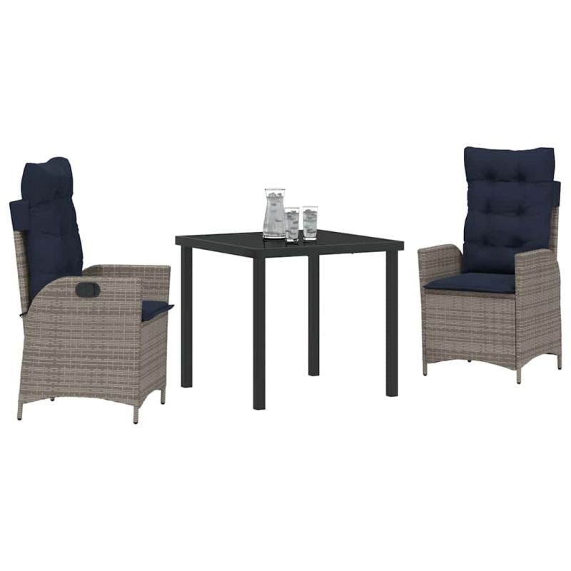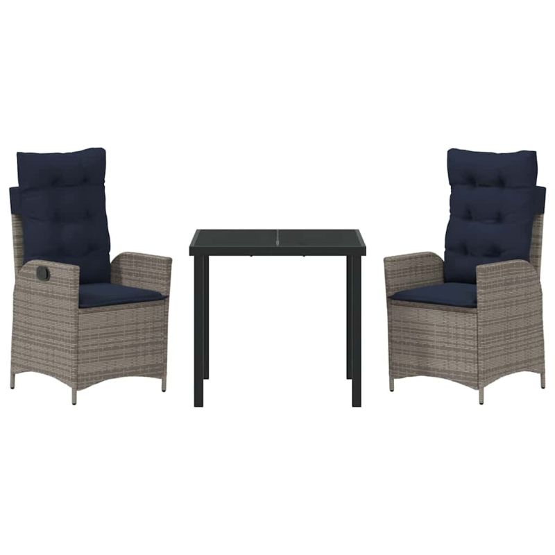 Комплект за хранене в градината 3 pcs Сив и черен Ратан