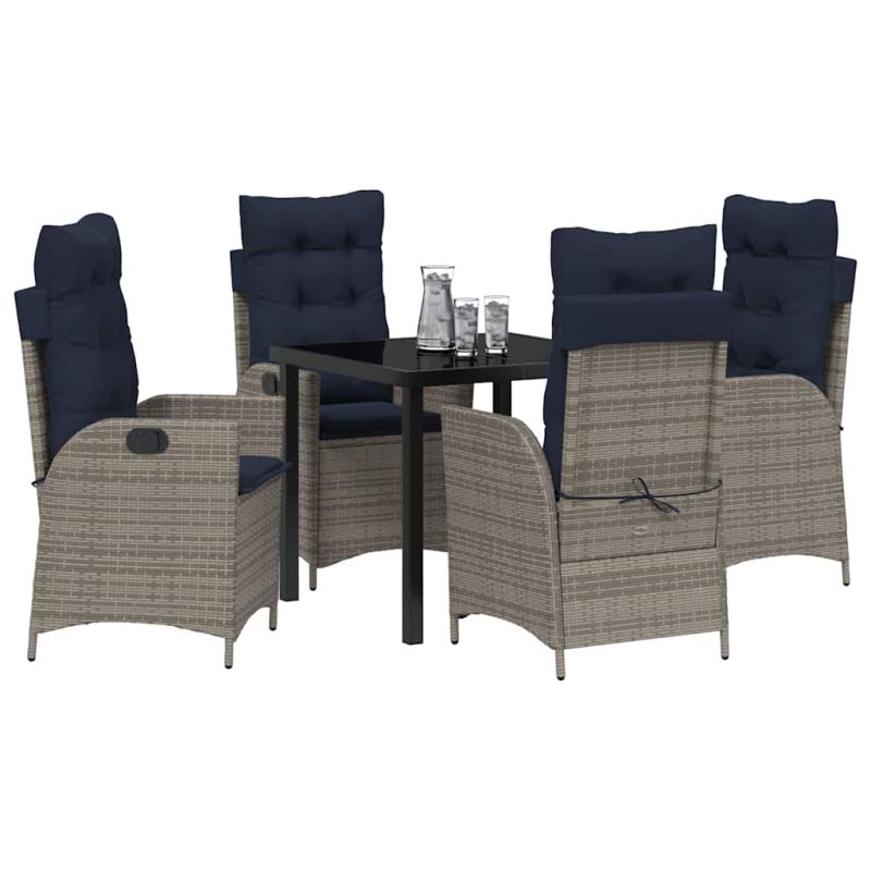 Комплект за хранене в градината 5 pcs Сив и черен Ратан