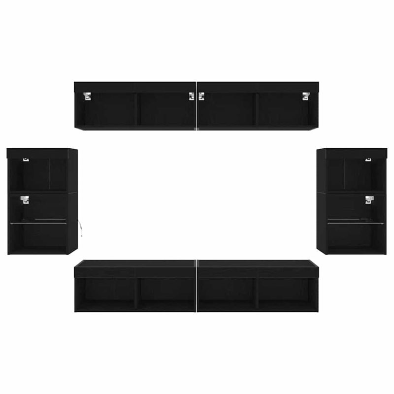 Комплект ТВ шкаф 8 pcs Черен дъб Инженерно дърво