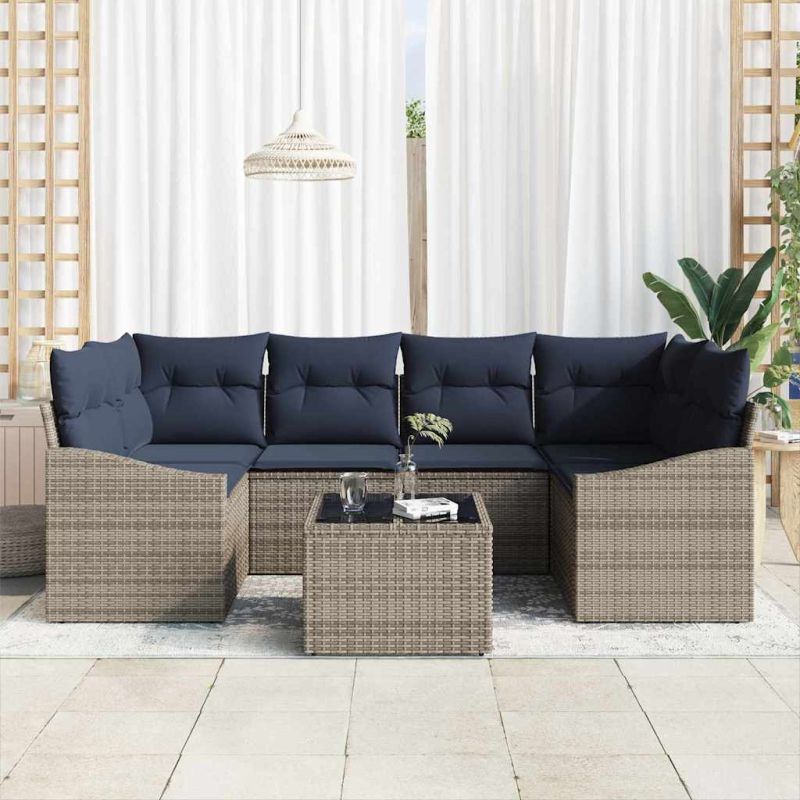 Начало Дом и градина Мебели Външни мебели Външно обзавеждане Градински дивани Комплект дивани с възглавница 7 pcs Сив и тъмносин полиратан