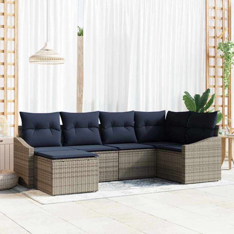Комплект дивани с възглавница 6 pcs Сив и тъмносин полиратан