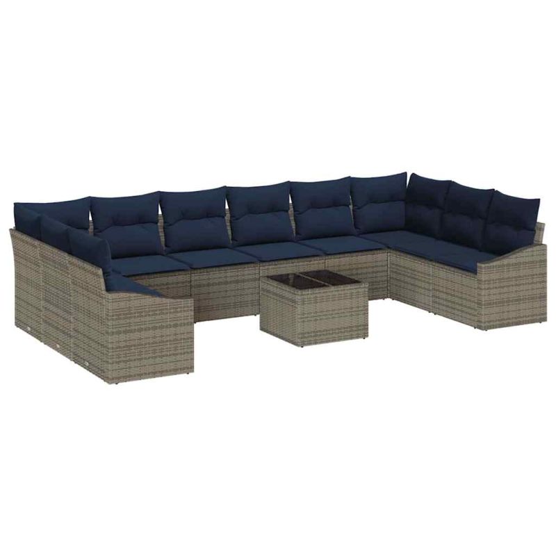 Градински Софа Комплект със съхранение Сив и тъмносин полиратан
