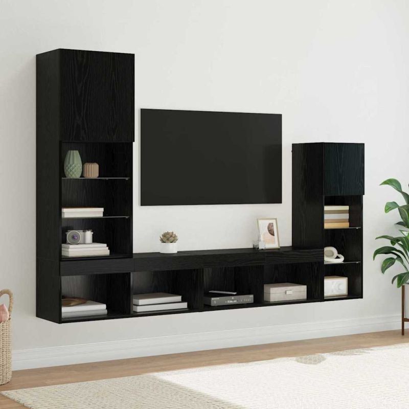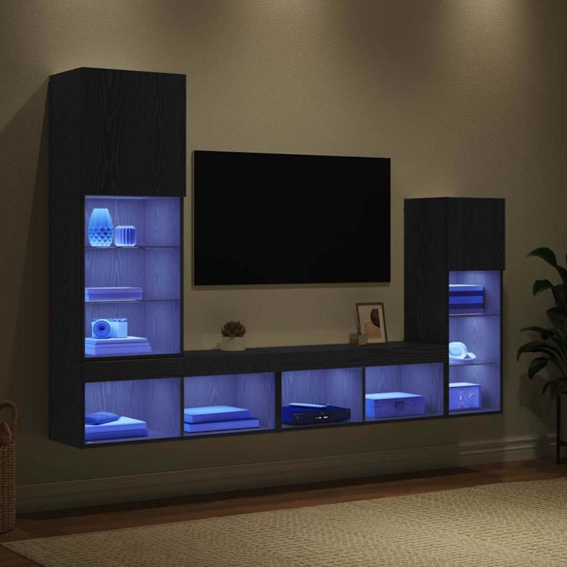 Тази изискана 4-частна стена за телевизор съчетава елегантност и практичност, придавайки на вашето жизнено пространство модерен дух. Линията й е идеална за фокусиране на развлекателната ви зона, предлагайки перфектен баланс между стил и удобство. Поставете телевизора на удобно място, докато използвате обширното съхранение, за да държите всекидневната подредена. Подходяща е за различни декорации, като оформя дома ви в изискано, организирано пространство. Конструкция от инженерна дървесина Стената за телевизор е изработена от здрава инженерна дървесина, която издържа дълго и поддържа интензивна употреба. Гладката й текстура придава минималистичен вид, като съчетава стил с функционалност. Включено LED осветление LED лентите добавят жив блясък, който освежава атмосферата в хола. Те не само повишават привлекателността, а и осигуряват видимост през нощта за уютно и живо усещане. Гъвкавост на рафтовете Рафтовете от инженерна дървесина предлагат множество възможности за съхранение на книги, декор или медии. Всеки рафт е просторен и здрав, идеален за показване на ценни вещи. Кабинети с врати на панти Чудесно проектираните врати с панти осигуряват лесен достъп, като същевременно държат вещите дискретно скрити и защитени. Тези врати, направени от инженерна дървесина, допринасят за елегантния вид на единицата. Поддръжка и чистота Поддържането в превъзходно състояние е лесно - просто избърсвайте редовно с влажна кърпа, за да премахнете праха. Избягвайте агресивни химикали, за да запазите гланцовото покритие и надеждната конструкция през годините. Моля, обърнете внимание, че трябва да използвате само сертифициран вход DC 5V. По-високото напрежение може да доведе до прегряване и да повреди устройството, както и до потенциален риск от прегряване и пожар. Не свързвайте този продукт към захранване, различно от описаното в ръководството, на табелката с името или изрично препоръчано от vidaXL. Този уред не трябва да се използва от деца под 15 години, както и от лица с намалени физически, сетивни или умствени способности или с липса на опит и познания относно използването на електронни уреди. Електричеството е опасно. Повредите и неправилният монтаж, употреба или промяна (подмяна на отделни компоненти) могат да доведат до повреда на уреда , което да доведе до токов удар и опасност за потребителя. Не използвайте този продукт във взривоопасна атмосфера, като например при наличие на запалими течности, газове и прах, или при температура над 50 градуса по Целзий или повече. Не включвайте продукта, ако свързващият кабел или захранването са видимо повредени. Ако външният гъвкав кабел или захранващ кабел на това осветително тяло е повреден, той трябва да бъде заменен изключително от производителя или негов сервизен агент, или от подобно квалифицирано лице, за да се избегне опасност. Изключете захранването по време на монтажа и поддръжката. Уверете се, че крушките са изстинали. Светлинният източник на това осветително тяло не може да се заменя; когато светлинният източник достигне края на експлоатационния си срок, цялото осветително тяло трябва да се замени. Само за употреба на закрито, не използвайте този продукт на открито. Не използвайте този артикул, ако някой от компонентите е счупен, скъсан или липсва. Този продукт се захранва с DC 5V, но сертифицирания