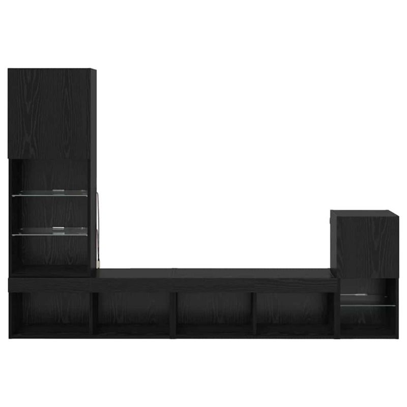Този четиричленен стенен телевизор комбинира съвременен стил с практични функции, и е идеален акцент за всеки хол. С изчистеното си правоъгълно оформление, той е проектиран да организира твоята развлекателна зона и предлага стилно решение за съхранение на медии и декорации. Конструкция от инженерна дървесина осигурява здравина и достъпно решение, което ефективно поддържа рафтовете. Висококачествената инженерна дървесина е сигурна за дълготрайна употреба, запазвайки вида и функциите си с минимални усилия за поддръжка. LED ленти са вградени в единицата, за да създадат уютна атмосфера с многоцветни варианти. Тези светлини издигат визията на съхраняваните вещи и предоставят възможност за промяна според твоето настроение. Функционални врати с панти осигуряват лесен достъп до съхранявани предмети, запазвайки ги защитени. Вратите от инженерна дървесина добавят елегантен стил и практичност. Спестяващ пространство стенен дизайн гарантира стабилност, максимизирайки използването на наличното пространство. Единицата може лесно да се монтира, добавяйки яснота и ред в интериора ти. Лесна поддръжка чрез просто избърсване с влажна кърпа. Това запазва качеството на завършека, без нужда от агресивни химикали, за да остане стилът съхранен. Моля, обърнете внимание, че трябва да използвате само сертифициран вход DC 5V. По-високото напрежение може да доведе до прегряване и да повреди устройството, както и до потенциален риск от прегряване и пожар. Не свързвайте този продукт към захранване, различно от описаното в ръководството, на табелката с името или изрично препоръчано от vidaXL. Този уред не трябва да се използва от деца под 15 години, както и от лица с намалени физически, сетивни или умствени способности или с липса на опит и познания относно използването на електронни уреди. Електричеството е опасно. Повредите и неправилният монтаж, употреба или промяна (подмяна на отделни компоненти) могат да доведат до повреда на уреда , което да доведе до токов удар и опасност за потребителя. Не използвайте този продукт във взривоопасна атмосфера, като например при наличие на запалими течности, газове и прах, или при температура над 50 градуса по Целзий или повече. Не включвайте продукта, ако свързващият кабел или захранването са видимо повредени. Ако външният гъвкав кабел или захранващ кабел на това осветително тяло е повреден, той трябва да бъде заменен изключително от производителя или негов сервизен агент, или от подобно квалифицирано лице, за да се избегне опасност. Изключете захранването по време на монтажа и поддръжката. Уверете се, че крушките са изстинали. Светлинният източник на това осветително тяло не може да се заменя; когато светлинният източник достигне края на експлоатационния си срок, цялото осветително тяло трябва да се замени. Само за употреба на закрито, не използвайте този продукт на открито. Не използвайте този артикул, ако някой от компонентите е счупен, скъсан или липсва. Този продукт се захранва с DC 5V, но сертифицираният 5V USB източник на захранване не е включен в комплекта. По-високото напрежение може да доведе до прегряване на устройството и да доведе до повреда на устройството и потенциален риск от прегряване и пожар.