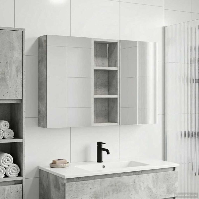 Този модерен банен комплект е олицетворение на стилната изтънченост, съчетавайки атрактивен дизайн с практическа функционалност. Проектиран за съвременния собственик на жилище, той действа както като шкаф за съхранение, така и като стилен акцент, който лесно се вписва в всяка баня. Осигурявайки достатъчно пространство с конфигурацията на стенния си дизайн, той спестява място на пода и позволява лесен достъп до основните неща. Комплектът подобрява атмосферата на банята с двупосочното огледало и LED осветление, създавайки удобна и организирана среда за ежедневните ритуали. Инженерна дървесина: Този шкаф е изработен от инженерна дървесина, позната с отличната си стабилност и издръжливост. Материалът е устойчив на деформация и повреди, осигурявайки дълготрайно парче за ежедневна употреба в банята. Гладкото му покритие придава елегантен вид, който е лесен за поддръжка. Простор за съхранение: Проектиран за максимална полезност, този шкаф предлага голямо пространство с множество рафтове и врати с панти. Добре обмисленото разположение позволява удобно организиране на санитарни принадлежности, осигурявайки всичко на ръка. Икономичният му дизайн повишава функционалността на банята, намалявайки безредиците. Инновативно двупосочно огледало: Тази уникална функция предлага уединение и видимост, а външната страна действа като стандартно огледало, докато вътрешната повърхност позволява дискретно наблюдение. Тази комбинация добавя стил и естетика в съвременните интериори. Ефективно LED осветление: С регулируеми LED ленти, захранвани от USB, шкафът осветява пространството с ярко и енергийно-ефективно осветление, което е особено приятно през нощта. Лесна поддръжка: Поддържането на този шкаф е супер лесно. Препоръчително е да използвате мек плат за почистване, а силните химикали да се избягват, за да се запази целостта на материала.