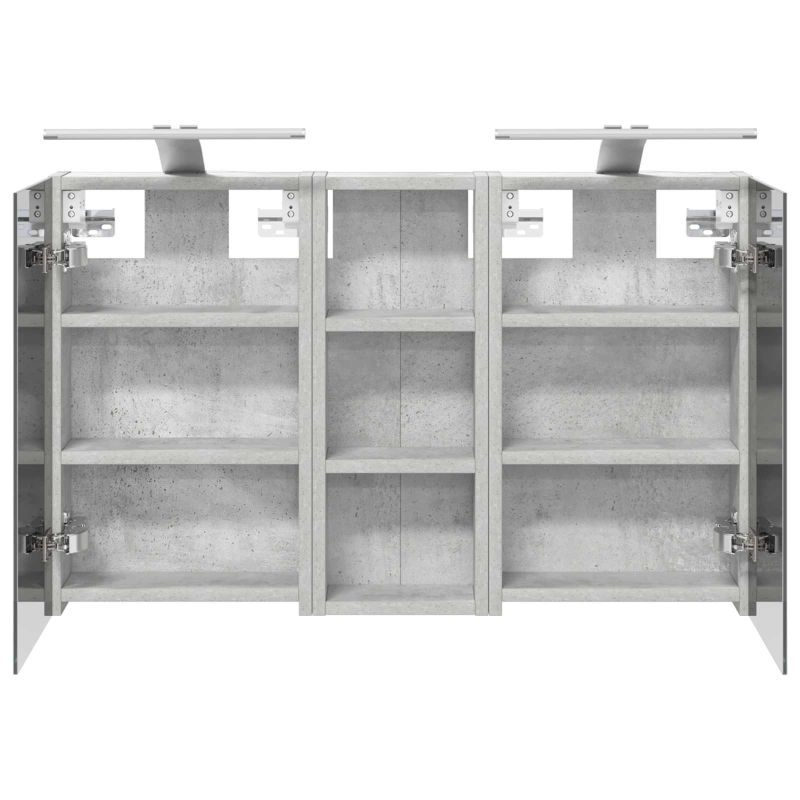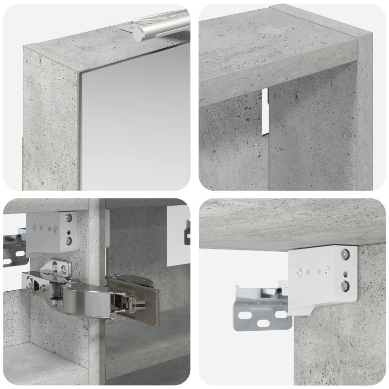 Този модерен банен комплект е олицетворение на стилната изтънченост, съчетавайки атрактивен дизайн с практическа функционалност. Проектиран за съвременния собственик на жилище, той действа както като шкаф за съхранение, така и като стилен акцент, който лесно се вписва в всяка баня. Осигурявайки достатъчно пространство с конфигурацията на стенния си дизайн, той спестява място на пода и позволява лесен достъп до основните неща. Комплектът подобрява атмосферата на банята с двупосочното огледало и LED осветление, създавайки удобна и организирана среда за ежедневните ритуали. Инженерна дървесина: Този шкаф е изработен от инженерна дървесина, позната с отличната си стабилност и издръжливост. Материалът е устойчив на деформация и повреди, осигурявайки дълготрайно парче за ежедневна употреба в банята. Гладкото му покритие придава елегантен вид, който е лесен за поддръжка. Простор за съхранение: Проектиран за максимална полезност, този шкаф предлага голямо пространство с множество рафтове и врати с панти. Добре обмисленото разположение позволява удобно организиране на санитарни принадлежности, осигурявайки всичко на ръка. Икономичният му дизайн повишава функционалността на банята, намалявайки безредиците. Инновативно двупосочно огледало: Тази уникална функция предлага уединение и видимост, а външната страна действа като стандартно огледало, докато вътрешната повърхност позволява дискретно наблюдение. Тази комбинация добавя стил и естетика в съвременните интериори. Ефективно LED осветление: С регулируеми LED ленти, захранвани от USB, шкафът осветява пространството с ярко и енергийно-ефективно осветление, което е особено приятно през нощта. Лесна поддръжка: Поддържането на този шкаф е супер лесно. Препоръчително е да използвате мек плат за почистване, а силните химикали да се избягват, за да се запази целостта на материала. Моля, обърнете внимание, че трябва да използвате само сертифициран вход DC 5V. По-високото напрежение може да доведе до прегряване и да повреди устройството, както и до потенциален риск от прегряване и пожар. Не свързвайте този продукт към захранване, различно от описаното в ръководството, на табелката с името или изрично препоръчано от vidaXL. Този уред не трябва да се използва от деца под 15 години, както и от лица с намалени физически, сетивни или умствени способности или с липса на опит и познания относно използването на електронни уреди. Електричеството е опасно. Повредите и неправилният монтаж, употреба или промяна (подмяна на отделни компоненти) могат да доведат до повреда на уреда , което да доведе до токов удар и опасност за потребителя. Не използвайте този продукт във взривоопасна атмосфера, като например при наличие на запалими течности, газове и прах, или при температура над 50 градуса по Целзий или повече. Не включвайте продукта, ако свързващият кабел или захранването са видимо повредени. Ако външният гъвкав кабел или захранващ кабел на това осветително тяло е повреден, той трябва да бъде заменен изключително от производителя или негов сервизен агент, или от подобно квалифицирано лице, за да се избегне опасност. Изключете захранването по време на монтажа и поддръжката. Уверете се, че крушките са изстинали. Светлинният източник на това осветително тяло не може да се заменя; когато светлинният източник д