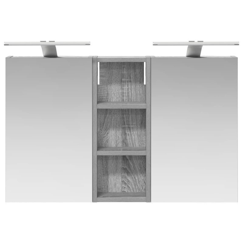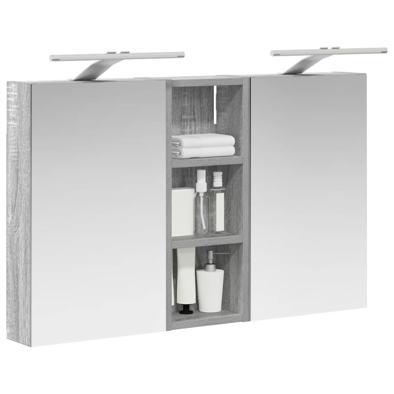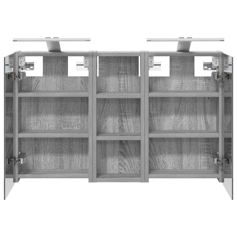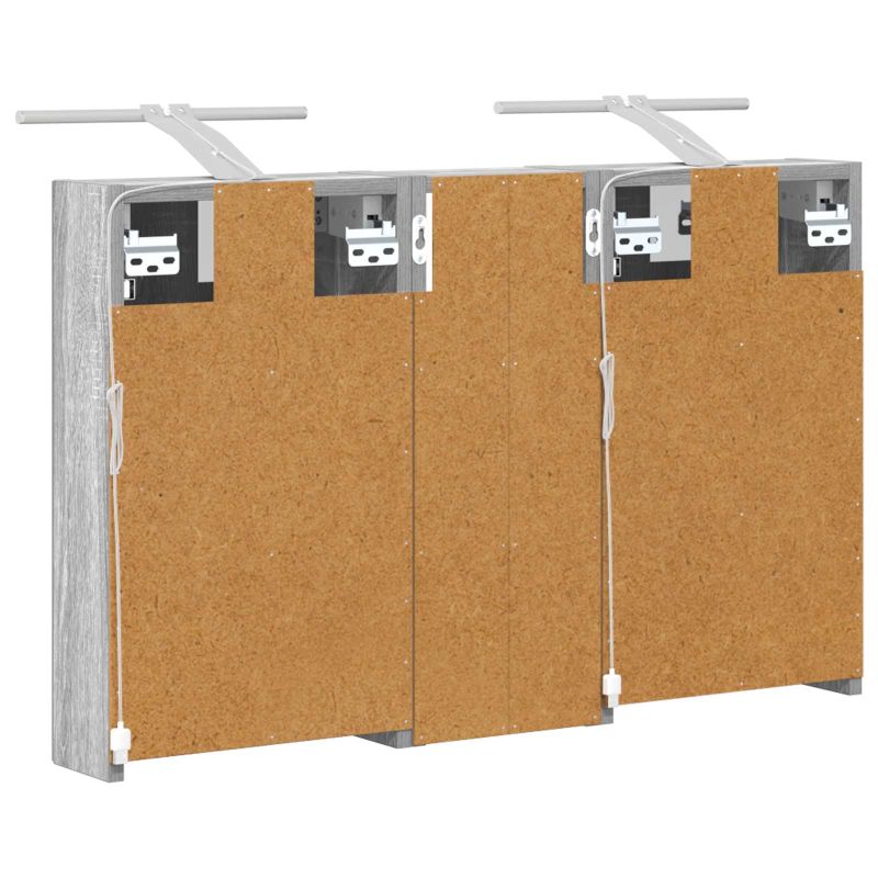 Този модерен банен комплект е олицетворение на стилната изтънченост, съчетавайки атрактивен дизайн с практическа функционалност. Проектиран за съвременния собственик на жилище, той действа както като шкаф за съхранение, така и като стилен акцент, който лесно се вписва в всяка баня. Осигурявайки достатъчно пространство с конфигурацията на стенния си дизайн, той спестява място на пода и позволява лесен достъп до основните неща. Комплектът подобрява атмосферата на банята с двупосочното огледало и LED осветление, създавайки удобна и организирана среда за ежедневните ритуали. Инженерна дървесина: Този шкаф е изработен от инженерна дървесина, позната с отличната си стабилност и издръжливост. Материалът е устойчив на деформация и повреди, осигурявайки дълготрайно парче за ежедневна употреба в банята. Гладкото му покритие придава елегантен вид, който е лесен за поддръжка. Простор за съхранение: Проектиран за максимална полезност, този шкаф предлага голямо пространство с множество рафтове и врати с панти. Добре обмисленото разположение позволява удобно организиране на санитарни принадлежности, осигурявайки всичко на ръка. Икономичният му дизайн повишава функционалността на банята, намалявайки безредиците. Инновативно двупосочно огледало: Тази уникална функция предлага уединение и видимост, а външната страна действа като стандартно огледало, докато вътрешната повърхност позволява дискретно наблюдение. Тази комбинация добавя стил и естетика в съвременните интериори. Ефективно LED осветление: С регулируеми LED ленти, захранвани от USB, шкафът осветява пространството с ярко и енергийно-ефективно осветление, което е особено приятно през нощта. Лесна поддръжка: Поддържането на този шкаф е супер лесно. Препоръчително е да използвате мек плат за почистване, а силните химикали да се избягват, за да се запази целостта на материала. Моля, обърнете внимание, че трябва да използвате само сертифициран вход DC 5V. По-високото напрежение може да доведе до прегряване и да повреди устройството, както и до потенциален риск от прегряване и пожар. Не свързвайте този продукт към захранване, различно от описаното в ръководството, на табелката с името или изрично препоръчано от vidaXL. Този уред не трябва да се използва от деца под 15 години, както и от лица с намалени физически, сетивни или умствени способности или с липса на опит и познания относно използването на електронни уреди. Електричеството е опасно. Повредите и неправилният монтаж, употреба или промяна (подмяна на отделни компоненти) могат да доведат до повреда на уреда , което да доведе до токов удар и опасност за потребителя. Не използвайте този продукт във взривоопасна атмосфера, като например при наличие на запалими течности, газове и прах, или при температура над 50 градуса по Целзий или повече. Не включвайте продукта, ако свързващият кабел или захранването са видимо повредени. Ако външният гъвкав кабел или захранващ кабел на това осветително тяло е повреден, той трябва да бъде заменен изключително от производителя или негов сервизен агент, или от подобно квалифицирано лице, за да се избегне опасност. Изключете захранването по време на монтажа и поддръжката. Уверете се, че крушките са изстинали. Светлинният източник на това осветително тяло не може да се заменя; когато светлинният източник д