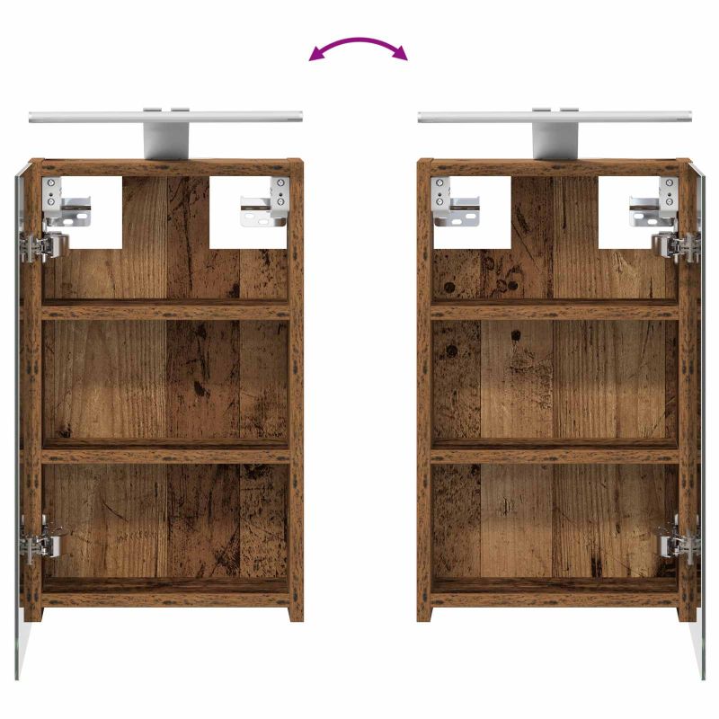 Този модерен банен комплект е олицетворение на стилната изтънченост, съчетавайки атрактивен дизайн с практическа функционалност. Проектиран за съвременния собственик на жилище, той действа както като шкаф за съхранение, така и като стилен акцент, който лесно се вписва в всяка баня. Осигурявайки достатъчно пространство с конфигурацията на стенния си дизайн, той спестява място на пода и позволява лесен достъп до основните неща. Комплектът подобрява атмосферата на банята с двупосочното огледало и LED осветление, създавайки удобна и организирана среда за ежедневните ритуали. Инженерна дървесина: Този шкаф е изработен от инженерна дървесина, позната с отличната си стабилност и издръжливост. Материалът е устойчив на деформация и повреди, осигурявайки дълготрайно парче за ежедневна употреба в банята. Гладкото му покритие придава елегантен вид, който е лесен за поддръжка. Простор за съхранение: Проектиран за максимална полезност, този шкаф предлага голямо пространство с множество рафтове и врати с панти. Добре обмисленото разположение позволява удобно организиране на санитарни принадлежности, осигурявайки всичко на ръка. Икономичният му дизайн повишава функционалността на банята, намалявайки безредиците. Инновативно двупосочно огледало: Тази уникална функция предлага уединение и видимост, а външната страна действа като стандартно огледало, докато вътрешната повърхност позволява дискретно наблюдение. Тази комбинация добавя стил и естетика в съвременните интериори. Ефективно LED осветление: С регулируеми LED ленти, захранвани от USB, шкафът осветява пространството с ярко и енергийно-ефективно осветление, което е особено приятно през нощта. Лесна поддръжка: Поддържането на този шкаф е супер лесно. Препоръчително е да използвате мек плат за почистване, а силните химикали да се избягват, за да се запази целостта на материала. Моля, обърнете внимание, че трябва да използвате само сертифициран вход DC 5V. По-високото напрежение може да доведе до прегряване и да повреди устройството, както и до потенциален риск от прегряване и пожар. Не свързвайте този продукт към захранване, различно от описаното в ръководството, на табелката с името или изрично препоръчано от vidaXL. Този уред не трябва да се използва от деца под 15 години, както и от лица с намалени физически, сетивни или умствени способности или с липса на опит и познания относно използването на електронни уреди. Електричеството е опасно. Повредите и неправилният монтаж, употреба или промяна (подмяна на отделни компоненти) могат да доведат до повреда на уреда , което да доведе до токов удар и опасност за потребителя. Не използвайте този продукт във взривоопасна атмосфера, като например при наличие на запалими течности, газове и прах, или при температура над 50 градуса по Целзий или повече. Не включвайте продукта, ако свързващият кабел или захранването са видимо повредени. Ако външният гъвкав кабел или захранващ кабел на това осветително тяло е повреден, той трябва да бъде заменен изключително от производителя или негов сервизен агент, или от подобно квалифицирано лице, за да се избегне опасност. Изключете захранването по време на монтажа и поддръжката. Уверете се, че крушките са изстинали. Светлинният източник на това осветително тяло не може да се заменя; когато светлинният източник д