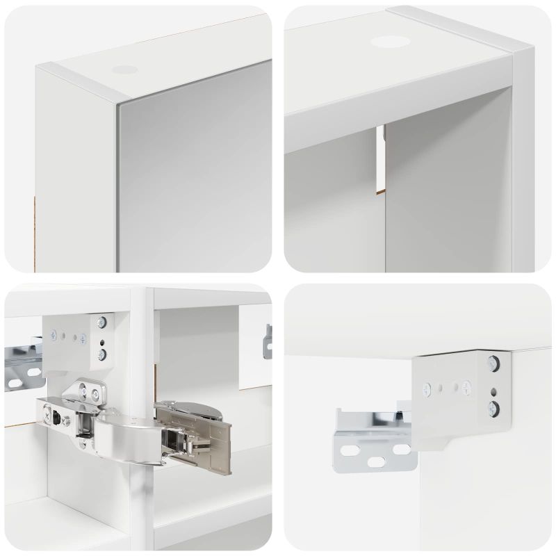 Този модерен банен комплект е олицетворение на стилната изтънченост, съчетавайки атрактивен дизайн с практическа функционалност. Проектиран за съвременния собственик на жилище, той действа както като шкаф за съхранение, така и като стилен акцент, който лесно се вписва в всяка баня. Осигурявайки достатъчно пространство с конфигурацията на стенния си дизайн, той спестява място на пода и позволява лесен достъп до основните неща. Комплектът подобрява атмосферата на банята с двупосочното огледало и LED осветление, създавайки удобна и организирана среда за ежедневните ритуали. Инженерна дървесина: Този шкаф е изработен от инженерна дървесина, позната с отличната си стабилност и издръжливост. Материалът е устойчив на деформация и повреди, осигурявайки дълготрайно парче за ежедневна употреба в банята. Гладкото му покритие придава елегантен вид, който е лесен за поддръжка. Простор за съхранение: Проектиран за максимална полезност, този шкаф предлага голямо пространство с множество рафтове и врати с панти. Добре обмисленото разположение позволява удобно организиране на санитарни принадлежности, осигурявайки всичко на ръка. Икономичният му дизайн повишава функционалността на банята, намалявайки безредиците. Инновативно двупосочно огледало: Тази уникална функция предлага уединение и видимост, а външната страна действа като стандартно огледало, докато вътрешната повърхност позволява дискретно наблюдение. Тази комбинация добавя стил и естетика в съвременните интериори. Ефективно LED осветление: С регулируеми LED ленти, захранвани от USB, шкафът осветява пространството с ярко и енергийно-ефективно осветление, което е особено приятно през нощта. Лесна поддръжка: Поддържането на този шкаф е супер лесно. Препоръчително е да използвате мек плат за почистване, а силните химикали да се избягват, за да се запази целостта на материала.