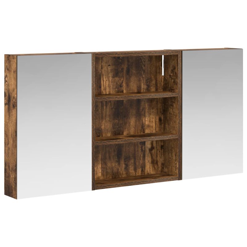 Този модерен банен комплект е олицетворение на стилната изтънченост, съчетавайки атрактивен дизайн с практическа функционалност. Проектиран за съвременния собственик на жилище, той действа както като шкаф за съхранение, така и като стилен акцент, който лесно се вписва в всяка баня. Осигурявайки достатъчно пространство с конфигурацията на стенния си дизайн, той спестява място на пода и позволява лесен достъп до основните неща. Комплектът подобрява атмосферата на банята с двупосочното огледало и LED осветление, създавайки удобна и организирана среда за ежедневните ритуали. Инженерна дървесина: Този шкаф е изработен от инженерна дървесина, позната с отличната си стабилност и издръжливост. Материалът е устойчив на деформация и повреди, осигурявайки дълготрайно парче за ежедневна употреба в банята. Гладкото му покритие придава елегантен вид, който е лесен за поддръжка. Простор за съхранение: Проектиран за максимална полезност, този шкаф предлага голямо пространство с множество рафтове и врати с панти. Добре обмисленото разположение позволява удобно организиране на санитарни принадлежности, осигурявайки всичко на ръка. Икономичният му дизайн повишава функционалността на банята, намалявайки безредиците. Инновативно двупосочно огледало: Тази уникална функция предлага уединение и видимост, а външната страна действа като стандартно огледало, докато вътрешната повърхност позволява дискретно наблюдение. Тази комбинация добавя стил и естетика в съвременните интериори. Ефективно LED осветление: С регулируеми LED ленти, захранвани от USB, шкафът осветява пространството с ярко и енергийно-ефективно осветление, което е особено приятно през нощта. Лесна поддръжка: Поддържането на този шкаф е супер лесно. Препоръчително е да използвате мек плат за почистване, а силните химикали да се избягват, за да се запази целостта на материала.