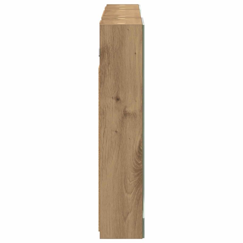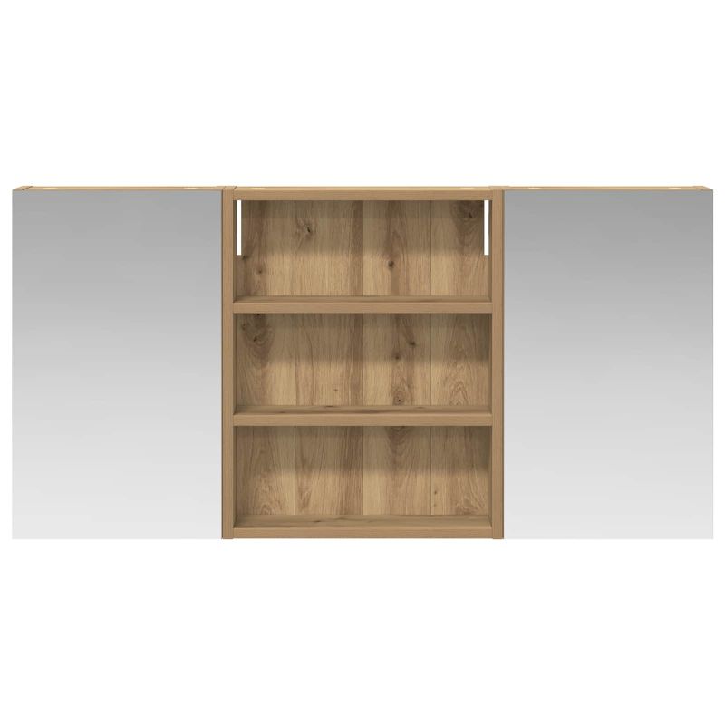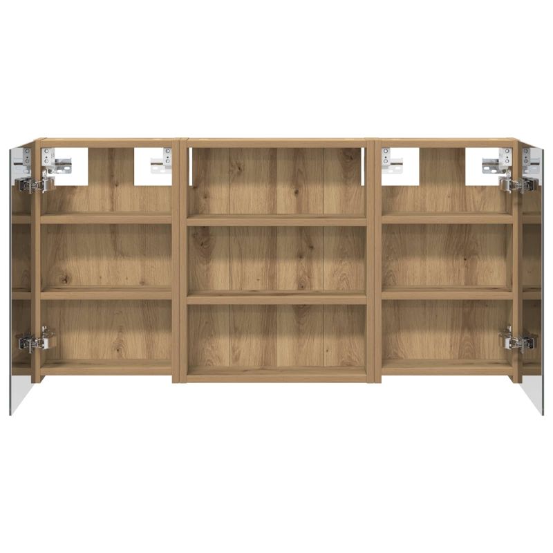 Този модерен банен комплект е олицетворение на стилната изтънченост, съчетавайки атрактивен дизайн с практическа функционалност. Проектиран за съвременния собственик на жилище, той действа както като шкаф за съхранение, така и като стилен акцент, който лесно се вписва в всяка баня. Осигурявайки достатъчно пространство с конфигурацията на стенния си дизайн, той спестява място на пода и позволява лесен достъп до основните неща. Комплектът подобрява атмосферата на банята с двупосочното огледало и LED осветление, създавайки удобна и организирана среда за ежедневните ритуали. Инженерна дървесина: Този шкаф е изработен от инженерна дървесина, позната с отличната си стабилност и издръжливост. Материалът е устойчив на деформация и повреди, осигурявайки дълготрайно парче за ежедневна употреба в банята. Гладкото му покритие придава елегантен вид, който е лесен за поддръжка. Простор за съхранение: Проектиран за максимална полезност, този шкаф предлага голямо пространство с множество рафтове и врати с панти. Добре обмисленото разположение позволява удобно организиране на санитарни принадлежности, осигурявайки всичко на ръка. Икономичният му дизайн повишава функционалността на банята, намалявайки безредиците. Инновативно двупосочно огледало: Тази уникална функция предлага уединение и видимост, а външната страна действа като стандартно огледало, докато вътрешната повърхност позволява дискретно наблюдение. Тази комбинация добавя стил и естетика в съвременните интериори. Ефективно LED осветление: С регулируеми LED ленти, захранвани от USB, шкафът осветява пространството с ярко и енергийно-ефективно осветление, което е особено приятно през нощта. Лесна поддръжка: Поддържането на този шкаф е супер лесно. Препоръчително е да използвате мек плат за почистване, а силните химикали да се избягват, за да се запази целостта на материала.