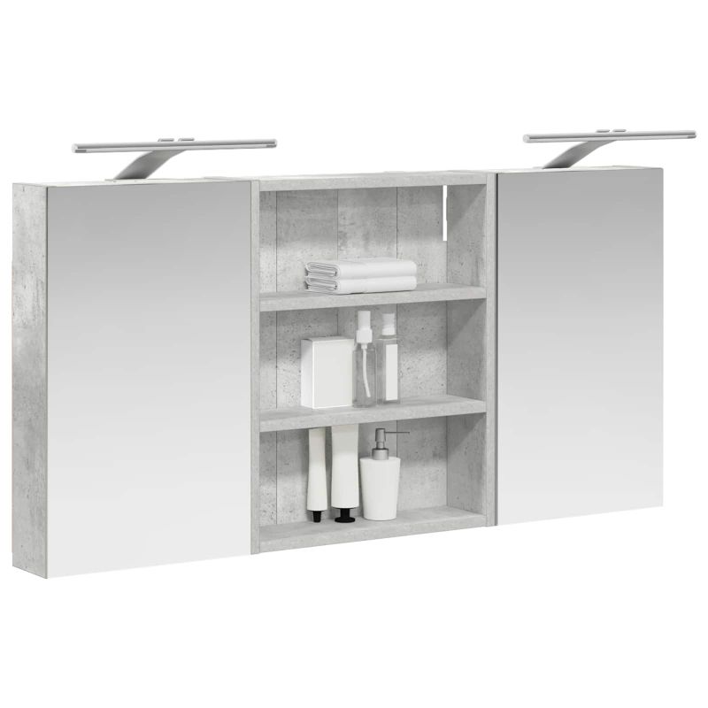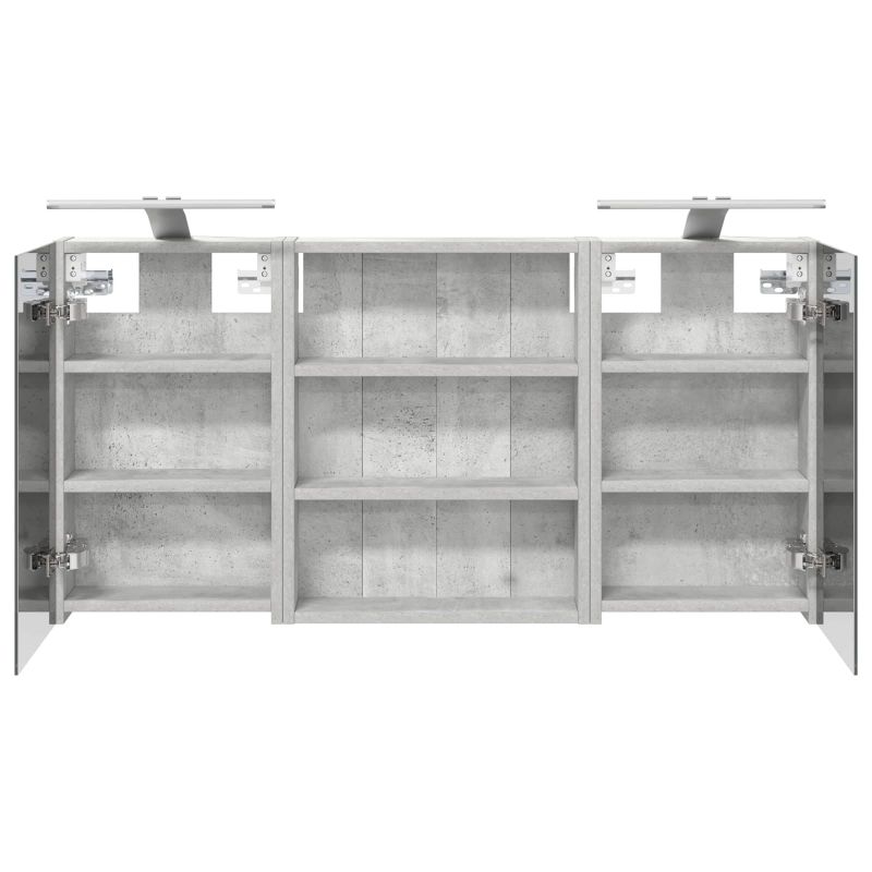 Този модерен банен комплект е олицетворение на стилната изтънченост, съчетавайки атрактивен дизайн с практическа функционалност. Проектиран за съвременния собственик на жилище, той действа както като шкаф за съхранение, така и като стилен акцент, който лесно се вписва в всяка баня. Осигурявайки достатъчно пространство с конфигурацията на стенния си дизайн, той спестява място на пода и позволява лесен достъп до основните неща. Комплектът подобрява атмосферата на банята с двупосочното огледало и LED осветление, създавайки удобна и организирана среда за ежедневните ритуали. Инженерна дървесина: Този шкаф е изработен от инженерна дървесина, позната с отличната си стабилност и издръжливост. Материалът е устойчив на деформация и повреди, осигурявайки дълготрайно парче за ежедневна употреба в банята. Гладкото му покритие придава елегантен вид, който е лесен за поддръжка. Простор за съхранение: Проектиран за максимална полезност, този шкаф предлага голямо пространство с множество рафтове и врати с панти. Добре обмисленото разположение позволява удобно организиране на санитарни принадлежности, осигурявайки всичко на ръка. Икономичният му дизайн повишава функционалността на банята, намалявайки безредиците. Инновативно двупосочно огледало: Тази уникална функция предлага уединение и видимост, а външната страна действа като стандартно огледало, докато вътрешната повърхност позволява дискретно наблюдение. Тази комбинация добавя стил и естетика в съвременните интериори. Ефективно LED осветление: С регулируеми LED ленти, захранвани от USB, шкафът осветява пространството с ярко и енергийно-ефективно осветление, което е особено приятно през нощта. Лесна поддръжка: Поддържането на този шкаф е супер лесно. Препоръчително е да използвате мек плат за почистване, а силните химикали да се избягват, за да се запази целостта на материала. Моля, обърнете внимание, че трябва да използвате само сертифициран вход DC 5V. По-високото напрежение може да доведе до прегряване и да повреди устройството, както и до потенциален риск от прегряване и пожар. Не свързвайте този продукт към захранване, различно от описаното в ръководството, на табелката с името или изрично препоръчано от vidaXL. Този уред не трябва да се използва от деца под 15 години, както и от лица с намалени физически, сетивни или умствени способности или с липса на опит и познания относно използването на електронни уреди. Електричеството е опасно. Повредите и неправилният монтаж, употреба или промяна (подмяна на отделни компоненти) могат да доведат до повреда на уреда , което да доведе до токов удар и опасност за потребителя. Не използвайте този продукт във взривоопасна атмосфера, като например при наличие на запалими течности, газове и прах, или при температура над 50 градуса по Целзий или повече. Не включвайте продукта, ако свързващият кабел или захранването са видимо повредени. Ако външният гъвкав кабел или захранващ кабел на това осветително тяло е повреден, той трябва да бъде заменен изключително от производителя или негов сервизен агент, или от подобно квалифицирано лице, за да се избегне опасност. Изключете захранването по време на монтажа и поддръжката. Уверете се, че крушките са изстинали. Светлинният източник на това осветително тяло не може да се заменя; когато светлинният източник д