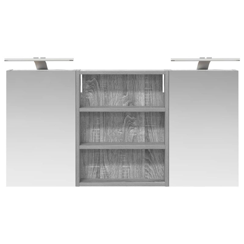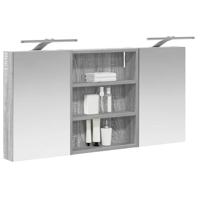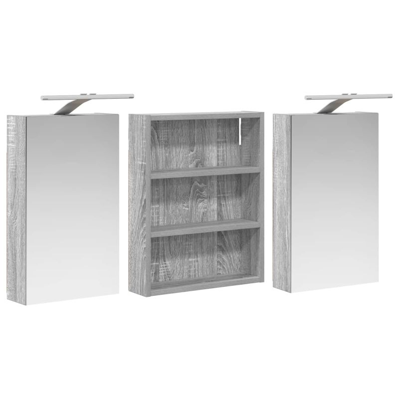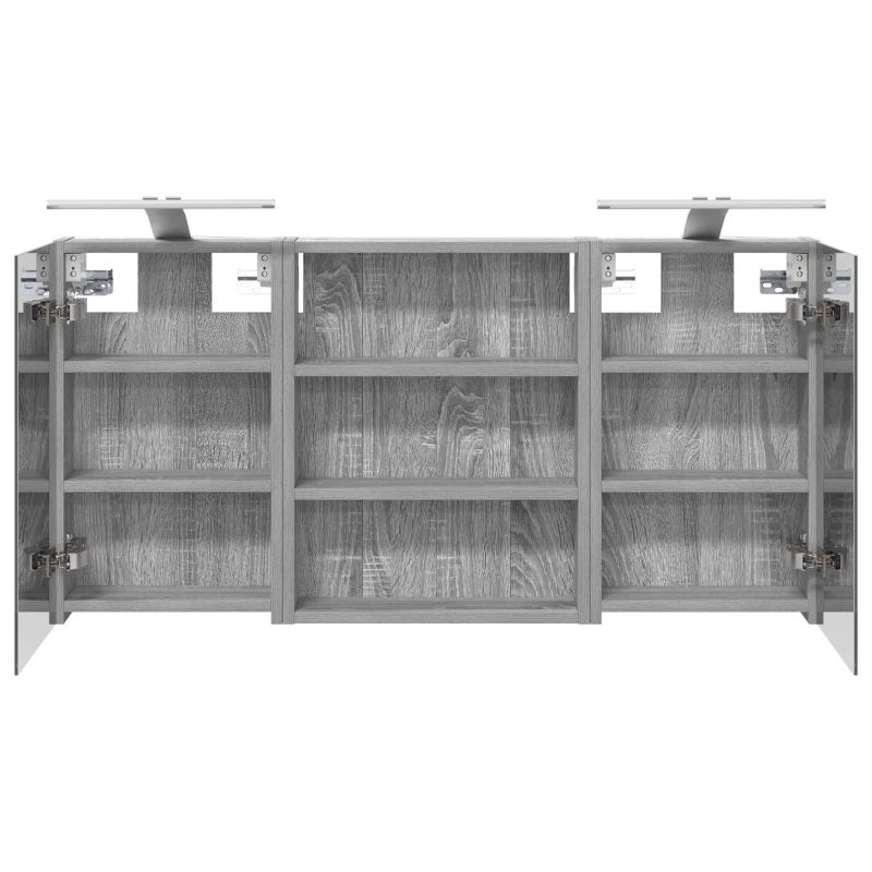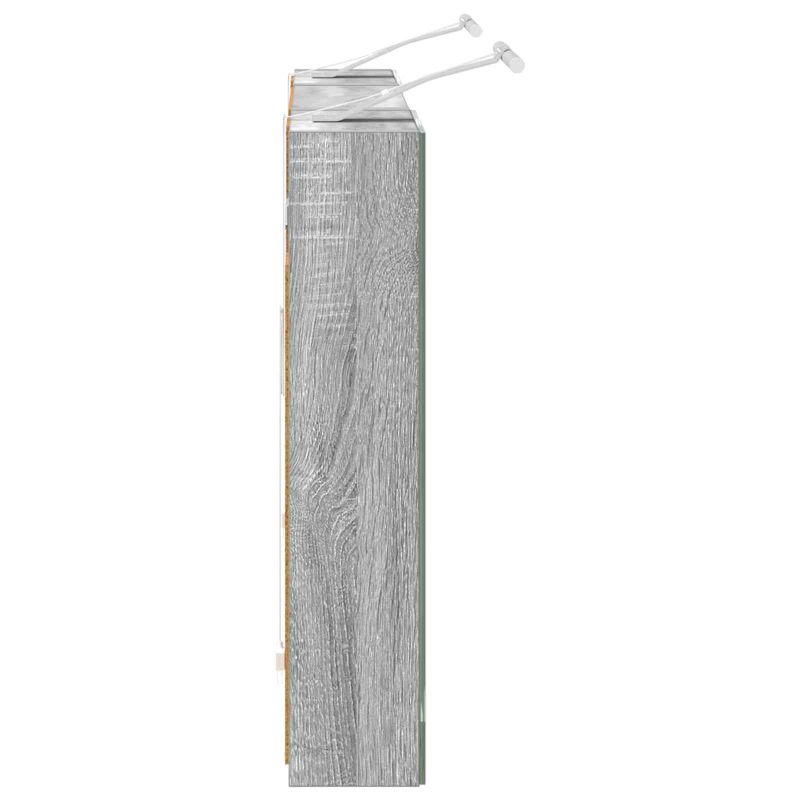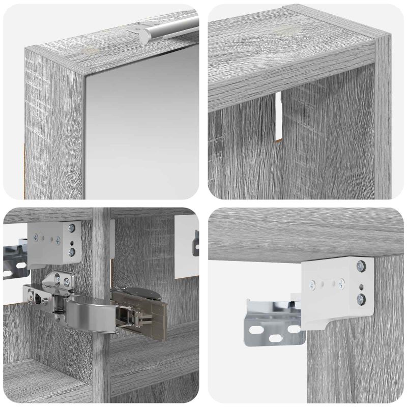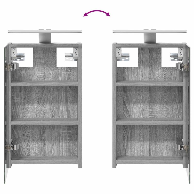 Този модерен банен комплект е олицетворение на стилната изтънченост, съчетавайки атрактивен дизайн с практическа функционалност. Проектиран за съвременния собственик на жилище, той действа както като шкаф за съхранение, така и като стилен акцент, който лесно се вписва в всяка баня. Осигурявайки достатъчно пространство с конфигурацията на стенния си дизайн, той спестява място на пода и позволява лесен достъп до основните неща. Комплектът подобрява атмосферата на банята с двупосочното огледало и LED осветление, създавайки удобна и организирана среда за ежедневните ритуали. Инженерна дървесина: Този шкаф е изработен от инженерна дървесина, позната с отличната си стабилност и издръжливост. Материалът е устойчив на деформация и повреди, осигурявайки дълготрайно парче за ежедневна употреба в банята. Гладкото му покритие придава елегантен вид, който е лесен за поддръжка. Простор за съхранение: Проектиран за максимална полезност, този шкаф предлага голямо пространство с множество рафтове и врати с панти. Добре обмисленото разположение позволява удобно организиране на санитарни принадлежности, осигурявайки всичко на ръка. Икономичният му дизайн повишава функционалността на банята, намалявайки безредиците. Инновативно двупосочно огледало: Тази уникална функция предлага уединение и видимост, а външната страна действа като стандартно огледало, докато вътрешната повърхност позволява дискретно наблюдение. Тази комбинация добавя стил и естетика в съвременните интериори. Ефективно LED осветление: С регулируеми LED ленти, захранвани от USB, шкафът осветява пространството с ярко и енергийно-ефективно осветление, което е особено приятно през нощта. Лесна поддръжка: Поддържането на този шкаф е супер лесно. Препоръчително е да използвате мек плат за почистване, а силните химикали да се избягват, за да се запази целостта на материала. Моля, обърнете внимание, че трябва да използвате само сертифициран вход DC 5V. По-високото напрежение може да доведе до прегряване и да повреди устройството, както и до потенциален риск от прегряване и пожар. Не свързвайте този продукт към захранване, различно от описаното в ръководството, на табелката с името или изрично препоръчано от vidaXL. Този уред не трябва да се използва от деца под 15 години, както и от лица с намалени физически, сетивни или умствени способности или с липса на опит и познания относно използването на електронни уреди. Електричеството е опасно. Повредите и неправилният монтаж, употреба или промяна (подмяна на отделни компоненти) могат да доведат до повреда на уреда , което да доведе до токов удар и опасност за потребителя. Не използвайте този продукт във взривоопасна атмосфера, като например при наличие на запалими течности, газове и прах, или при температура над 50 градуса по Целзий или повече. Не включвайте продукта, ако свързващият кабел или захранването са видимо повредени. Ако външният гъвкав кабел или захранващ кабел на това осветително тяло е повреден, той трябва да бъде заменен изключително от производителя или негов сервизен агент, или от подобно квалифицирано лице, за да се избегне опасност. Изключете захранването по време на монтажа и поддръжката. Уверете се, че крушките са изстинали. Светлинният източник на това осветително тяло не може да се заменя; когато светлинният източник д