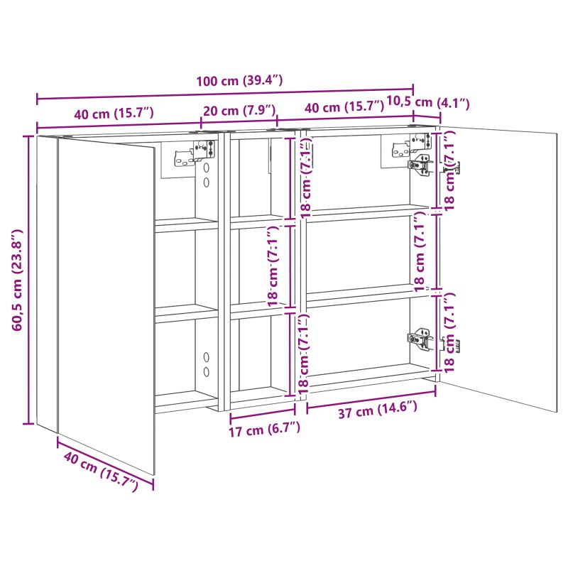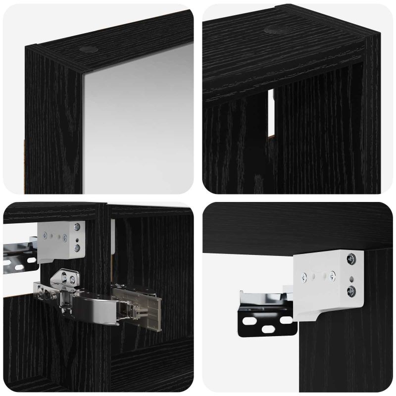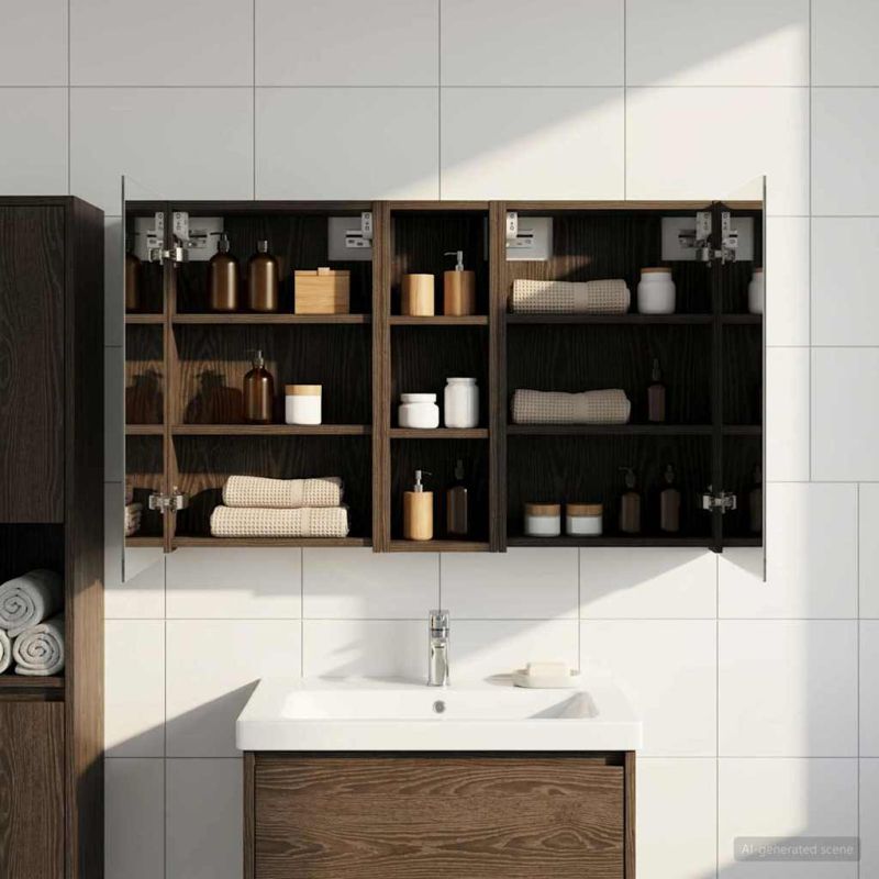 Този модерен банен комплект е олицетворение на стилната изтънченост, съчетавайки атрактивен дизайн с практическа функционалност. Проектиран за съвременния собственик на жилище, той действа както като шкаф за съхранение, така и като стилен акцент, който лесно се вписва в всяка баня. Осигурявайки достатъчно пространство с конфигурацията на стенния си дизайн, той спестява място на пода и позволява лесен достъп до основните неща. Комплектът подобрява атмосферата на банята с двупосочното огледало и LED осветление, създавайки удобна и организирана среда за ежедневните ритуали. Инженерна дървесина: Този шкаф е изработен от инженерна дървесина, позната с отличната си стабилност и издръжливост. Материалът е устойчив на деформация и повреди, осигурявайки дълготрайно парче за ежедневна употреба в банята. Гладкото му покритие придава елегантен вид, който е лесен за поддръжка. Простор за съхранение: Проектиран за максимална полезност, този шкаф предлага голямо пространство с множество рафтове и врати с панти. Добре обмисленото разположение позволява удобно организиране на санитарни принадлежности, осигурявайки всичко на ръка. Икономичният му дизайн повишава функционалността на банята, намалявайки безредиците. Инновативно двупосочно огледало: Тази уникална функция предлага уединение и видимост, а външната страна действа като стандартно огледало, докато вътрешната повърхност позволява дискретно наблюдение. Тази комбинация добавя стил и естетика в съвременните интериори. Ефективно LED осветление: С регулируеми LED ленти, захранвани от USB, шкафът осветява пространството с ярко и енергийно-ефективно осветление, което е особено приятно през нощта. Лесна поддръжка: Поддържането на този шкаф е супер лесно. Препоръчително е да използвате мек плат за почистване, а силните химикали да се избягват, за да се запази целостта на материала.