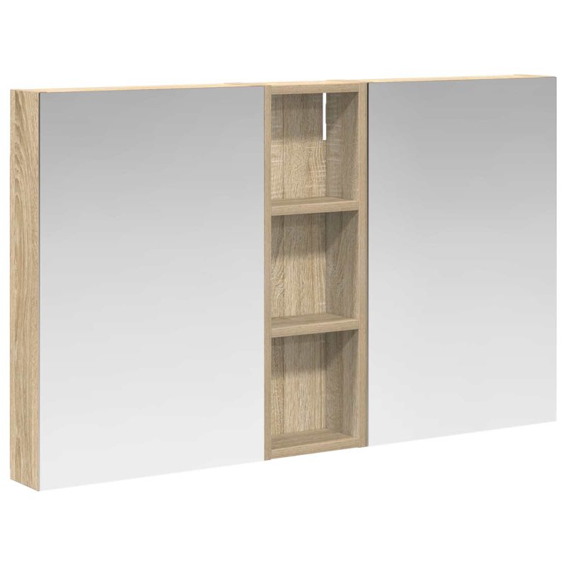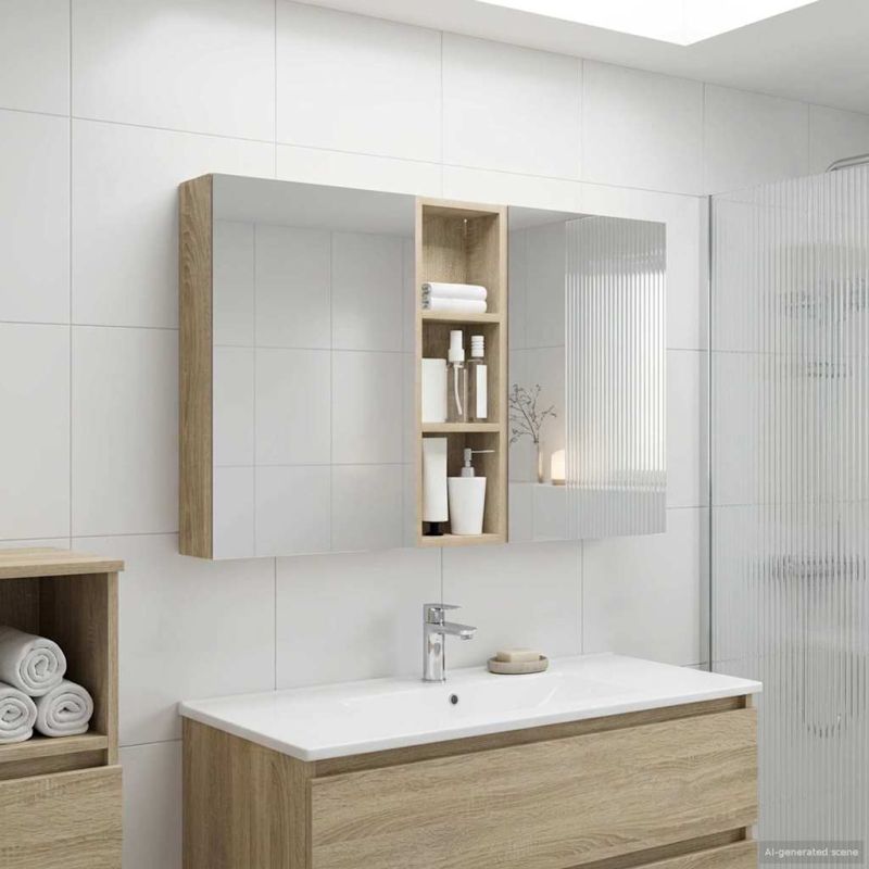 Този модерен банен комплект е олицетворение на стилната изтънченост, съчетавайки атрактивен дизайн с практическа функционалност. Проектиран за съвременния собственик на жилище, той действа както като шкаф за съхранение, така и като стилен акцент, който лесно се вписва в всяка баня. Осигурявайки достатъчно пространство с конфигурацията на стенния си дизайн, той спестява място на пода и позволява лесен достъп до основните неща. Комплектът подобрява атмосферата на банята с двупосочното огледало и LED осветление, създавайки удобна и организирана среда за ежедневните ритуали. Инженерна дървесина: Този шкаф е изработен от инженерна дървесина, позната с отличната си стабилност и издръжливост. Материалът е устойчив на деформация и повреди, осигурявайки дълготрайно парче за ежедневна употреба в банята. Гладкото му покритие придава елегантен вид, който е лесен за поддръжка. Простор за съхранение: Проектиран за максимална полезност, този шкаф предлага голямо пространство с множество рафтове и врати с панти. Добре обмисленото разположение позволява удобно организиране на санитарни принадлежности, осигурявайки всичко на ръка. Икономичният му дизайн повишава функционалността на банята, намалявайки безредиците. Инновативно двупосочно огледало: Тази уникална функция предлага уединение и видимост, а външната страна действа като стандартно огледало, докато вътрешната повърхност позволява дискретно наблюдение. Тази комбинация добавя стил и естетика в съвременните интериори. Ефективно LED осветление: С регулируеми LED ленти, захранвани от USB, шкафът осветява пространството с ярко и енергийно-ефективно осветление, което е особено приятно през нощта. Лесна поддръжка: Поддържането на този шкаф е супер лесно. Препоръчително е да използвате мек плат за почистване, а силните химикали да се избягват, за да се запази целостта на материала.