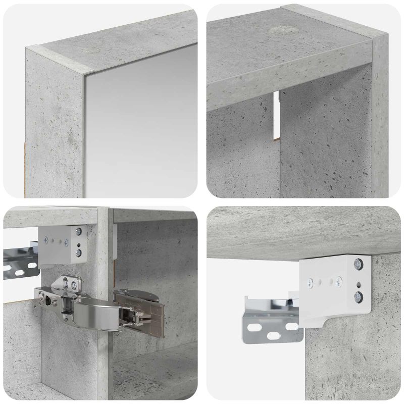 Този модерен банен комплект е олицетворение на стилната изтънченост, съчетавайки атрактивен дизайн с практическа функционалност. Проектиран за съвременния собственик на жилище, той действа както като шкаф за съхранение, така и като стилен акцент, който лесно се вписва в всяка баня. Осигурявайки достатъчно пространство с конфигурацията на стенния си дизайн, той спестява място на пода и позволява лесен достъп до основните неща. Комплектът подобрява атмосферата на банята с двупосочното огледало и LED осветление, създавайки удобна и организирана среда за ежедневните ритуали. Инженерна дървесина: Този шкаф е изработен от инженерна дървесина, позната с отличната си стабилност и издръжливост. Материалът е устойчив на деформация и повреди, осигурявайки дълготрайно парче за ежедневна употреба в банята. Гладкото му покритие придава елегантен вид, който е лесен за поддръжка. Простор за съхранение: Проектиран за максимална полезност, този шкаф предлага голямо пространство с множество рафтове и врати с панти. Добре обмисленото разположение позволява удобно организиране на санитарни принадлежности, осигурявайки всичко на ръка. Икономичният му дизайн повишава функционалността на банята, намалявайки безредиците. Инновативно двупосочно огледало: Тази уникална функция предлага уединение и видимост, а външната страна действа като стандартно огледало, докато вътрешната повърхност позволява дискретно наблюдение. Тази комбинация добавя стил и естетика в съвременните интериори. Ефективно LED осветление: С регулируеми LED ленти, захранвани от USB, шкафът осветява пространството с ярко и енергийно-ефективно осветление, което е особено приятно през нощта. Лесна поддръжка: Поддържането на този шкаф е супер лесно. Препоръчително е да използвате мек плат за почистване, а силните химикали да се избягват, за да се запази целостта на материала.