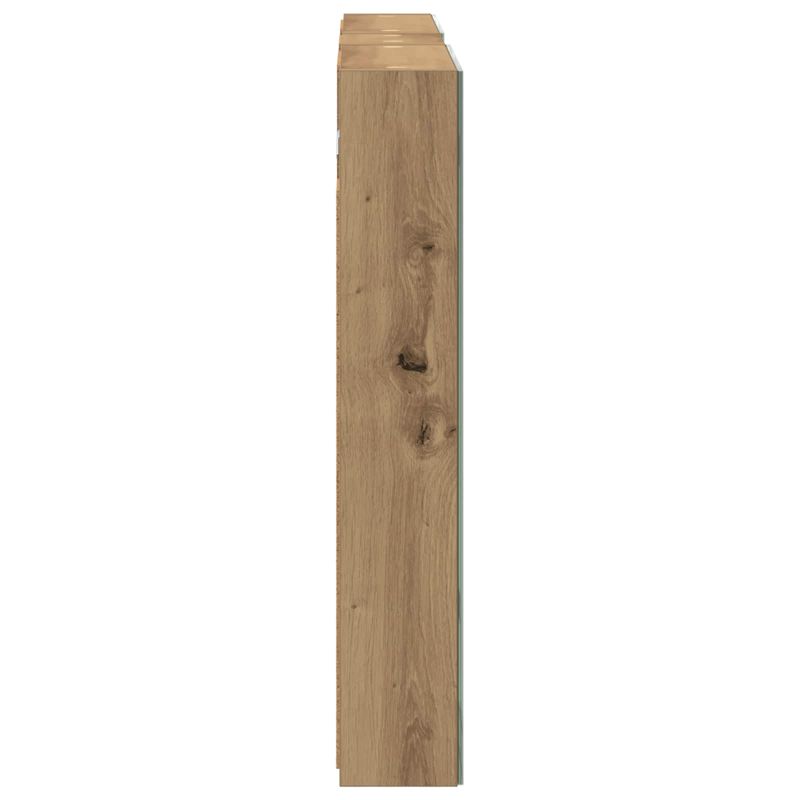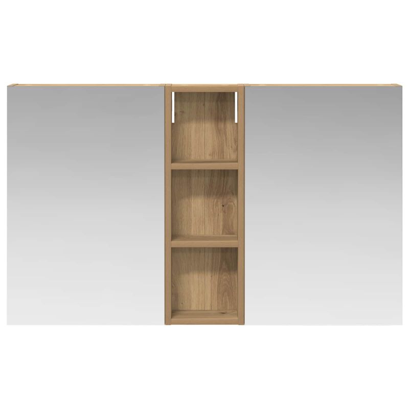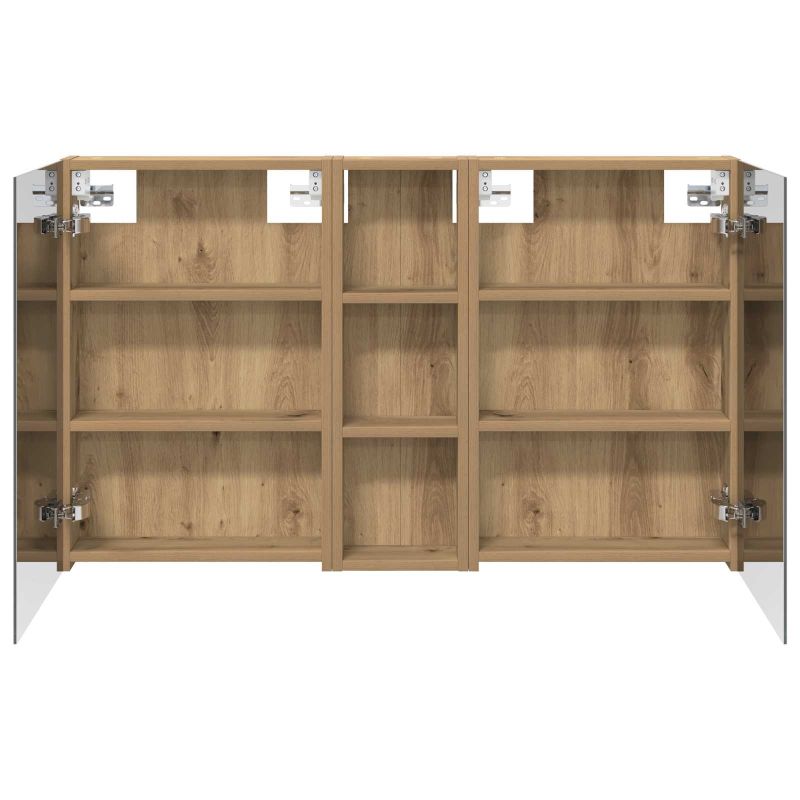 Този модерен банен комплект е олицетворение на стилната изтънченост, съчетавайки атрактивен дизайн с практическа функционалност. Проектиран за съвременния собственик на жилище, той действа както като шкаф за съхранение, така и като стилен акцент, който лесно се вписва в всяка баня. Осигурявайки достатъчно пространство с конфигурацията на стенния си дизайн, той спестява място на пода и позволява лесен достъп до основните неща. Комплектът подобрява атмосферата на банята с двупосочното огледало и LED осветление, създавайки удобна и организирана среда за ежедневните ритуали. Инженерна дървесина: Този шкаф е изработен от инженерна дървесина, позната с отличната си стабилност и издръжливост. Материалът е устойчив на деформация и повреди, осигурявайки дълготрайно парче за ежедневна употреба в банята. Гладкото му покритие придава елегантен вид, който е лесен за поддръжка. Простор за съхранение: Проектиран за максимална полезност, този шкаф предлага голямо пространство с множество рафтове и врати с панти. Добре обмисленото разположение позволява удобно организиране на санитарни принадлежности, осигурявайки всичко на ръка. Икономичният му дизайн повишава функционалността на банята, намалявайки безредиците. Инновативно двупосочно огледало: Тази уникална функция предлага уединение и видимост, а външната страна действа като стандартно огледало, докато вътрешната повърхност позволява дискретно наблюдение. Тази комбинация добавя стил и естетика в съвременните интериори. Ефективно LED осветление: С регулируеми LED ленти, захранвани от USB, шкафът осветява пространството с ярко и енергийно-ефективно осветление, което е особено приятно през нощта. Лесна поддръжка: Поддържането на този шкаф е супер лесно. Препоръчително е да използвате мек плат за почистване, а силните химикали да се избягват, за да се запази целостта на материала.