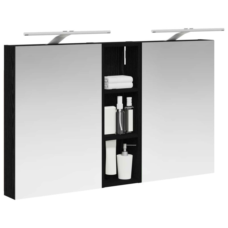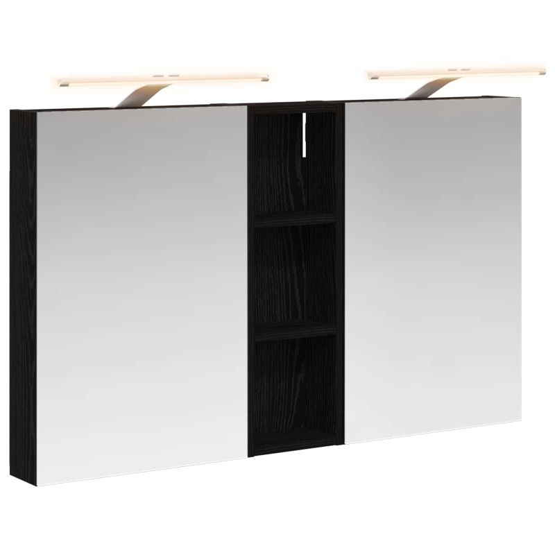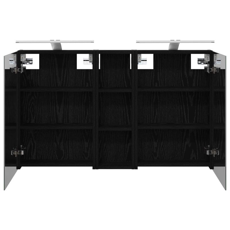 Този модерен банен комплект е олицетворение на стилната изтънченост, съчетавайки атрактивен дизайн с практическа функционалност. Проектиран за съвременния собственик на жилище, той действа както като шкаф за съхранение, така и като стилен акцент, който лесно се вписва в всяка баня. Осигурявайки достатъчно пространство с конфигурацията на стенния си дизайн, той спестява място на пода и позволява лесен достъп до основните неща. Комплектът подобрява атмосферата на банята с двупосочното огледало и LED осветление, създавайки удобна и организирана среда за ежедневните ритуали. Инженерна дървесина: Този шкаф е изработен от инженерна дървесина, позната с отличната си стабилност и издръжливост. Материалът е устойчив на деформация и повреди, осигурявайки дълготрайно парче за ежедневна употреба в банята. Гладкото му покритие придава елегантен вид, който е лесен за поддръжка. Простор за съхранение: Проектиран за максимална полезност, този шкаф предлага голямо пространство с множество рафтове и врати с панти. Добре обмисленото разположение позволява удобно организиране на санитарни принадлежности, осигурявайки всичко на ръка. Икономичният му дизайн повишава функционалността на банята, намалявайки безредиците. Инновативно двупосочно огледало: Тази уникална функция предлага уединение и видимост, а външната страна действа като стандартно огледало, докато вътрешната повърхност позволява дискретно наблюдение. Тази комбинация добавя стил и естетика в съвременните интериори. Ефективно LED осветление: С регулируеми LED ленти, захранвани от USB, шкафът осветява пространството с ярко и енергийно-ефективно осветление, което е особено приятно през нощта. Лесна поддръжка: Поддържането на този шкаф е супер лесно. Препоръчително е да използвате мек плат за почистване, а силните химикали да се избягват, за да се запази целостта на материала. Моля, обърнете внимание, че трябва да използвате само сертифициран вход DC 5V. По-високото напрежение може да доведе до прегряване и да повреди устройството, както и до потенциален риск от прегряване и пожар. Не свързвайте този продукт към захранване, различно от описаното в ръководството, на табелката с името или изрично препоръчано от vidaXL. Този уред не трябва да се използва от деца под 15 години, както и от лица с намалени физически, сетивни или умствени способности или с липса на опит и познания относно използването на електронни уреди. Електричеството е опасно. Повредите и неправилният монтаж, употреба или промяна (подмяна на отделни компоненти) могат да доведат до повреда на уреда , което да доведе до токов удар и опасност за потребителя. Не използвайте този продукт във взривоопасна атмосфера, като например при наличие на запалими течности, газове и прах, или при температура над 50 градуса по Целзий или повече. Не включвайте продукта, ако свързващият кабел или захранването са видимо повредени. Ако външният гъвкав кабел или захранващ кабел на това осветително тяло е повреден, той трябва да бъде заменен изключително от производителя или негов сервизен агент, или от подобно квалифицирано лице, за да се избегне опасност. Изключете захранването по време на монтажа и поддръжката. Уверете се, че крушките са изстинали. Светлинният източник на това осветително тяло не може да се заменя; когато светлинният източник д