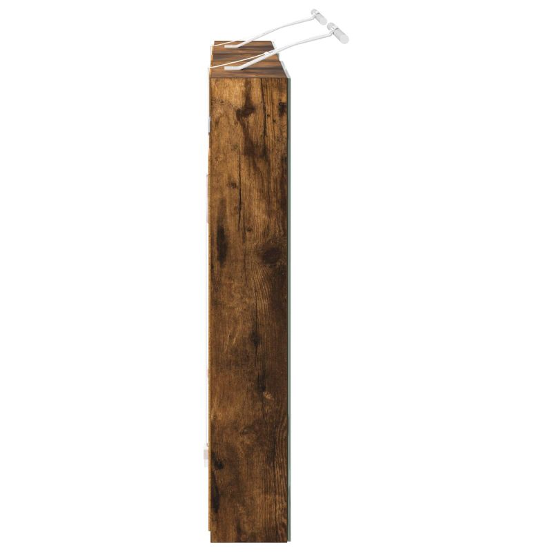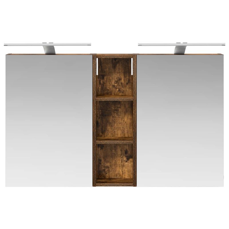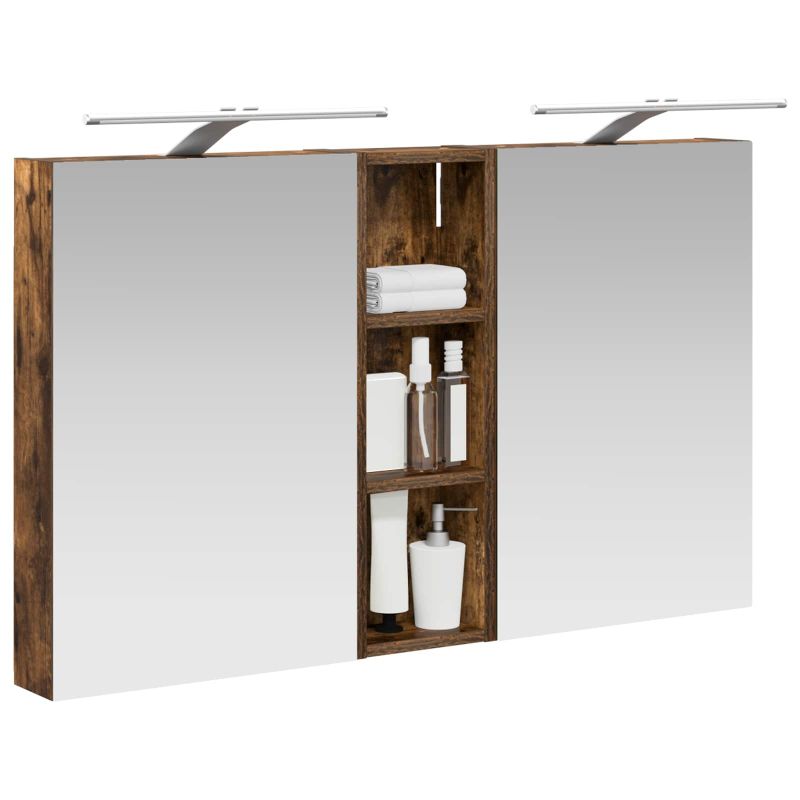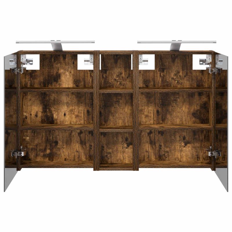 Този модерен банен комплект е олицетворение на стилната изтънченост, съчетавайки атрактивен дизайн с практическа функционалност. Проектиран за съвременния собственик на жилище, той действа както като шкаф за съхранение, така и като стилен акцент, който лесно се вписва в всяка баня. Осигурявайки достатъчно пространство с конфигурацията на стенния си дизайн, той спестява място на пода и позволява лесен достъп до основните неща. Комплектът подобрява атмосферата на банята с двупосочното огледало и LED осветление, създавайки удобна и организирана среда за ежедневните ритуали. Инженерна дървесина: Този шкаф е изработен от инженерна дървесина, позната с отличната си стабилност и издръжливост. Материалът е устойчив на деформация и повреди, осигурявайки дълготрайно парче за ежедневна употреба в банята. Гладкото му покритие придава елегантен вид, който е лесен за поддръжка. Простор за съхранение: Проектиран за максимална полезност, този шкаф предлага голямо пространство с множество рафтове и врати с панти. Добре обмисленото разположение позволява удобно организиране на санитарни принадлежности, осигурявайки всичко на ръка. Икономичният му дизайн повишава функционалността на банята, намалявайки безредиците. Инновативно двупосочно огледало: Тази уникална функция предлага уединение и видимост, а външната страна действа като стандартно огледало, докато вътрешната повърхност позволява дискретно наблюдение. Тази комбинация добавя стил и естетика в съвременните интериори. Ефективно LED осветление: С регулируеми LED ленти, захранвани от USB, шкафът осветява пространството с ярко и енергийно-ефективно осветление, което е особено приятно през нощта. Лесна поддръжка: Поддържането на този шкаф е супер лесно. Препоръчително е да използвате мек плат за почистване, а силните химикали да се избягват, за да се запази целостта на материала. Моля, обърнете внимание, че трябва да използвате само сертифициран вход DC 5V. По-високото напрежение може да доведе до прегряване и да повреди устройството, както и до потенциален риск от прегряване и пожар. Не свързвайте този продукт към захранване, различно от описаното в ръководството, на табелката с името или изрично препоръчано от vidaXL. Този уред не трябва да се използва от деца под 15 години, както и от лица с намалени физически, сетивни или умствени способности или с липса на опит и познания относно използването на електронни уреди. Електричеството е опасно. Повредите и неправилният монтаж, употреба или промяна (подмяна на отделни компоненти) могат да доведат до повреда на уреда , което да доведе до токов удар и опасност за потребителя. Не използвайте този продукт във взривоопасна атмосфера, като например при наличие на запалими течности, газове и прах, или при температура над 50 градуса по Целзий или повече. Не включвайте продукта, ако свързващият кабел или захранването са видимо повредени. Ако външният гъвкав кабел или захранващ кабел на това осветително тяло е повреден, той трябва да бъде заменен изключително от производителя или негов сервизен агент, или от подобно квалифицирано лице, за да се избегне опасност. Изключете захранването по време на монтажа и поддръжката. Уверете се, че крушките са изстинали. Светлинният източник на това осветително тяло не може да се заменя; когато светлинният източник д