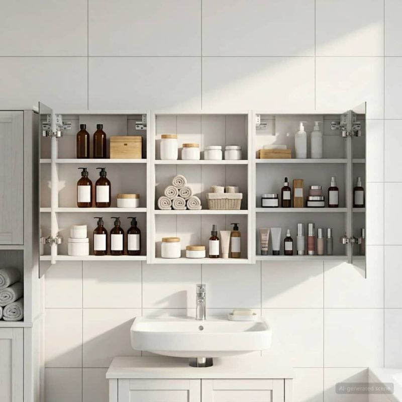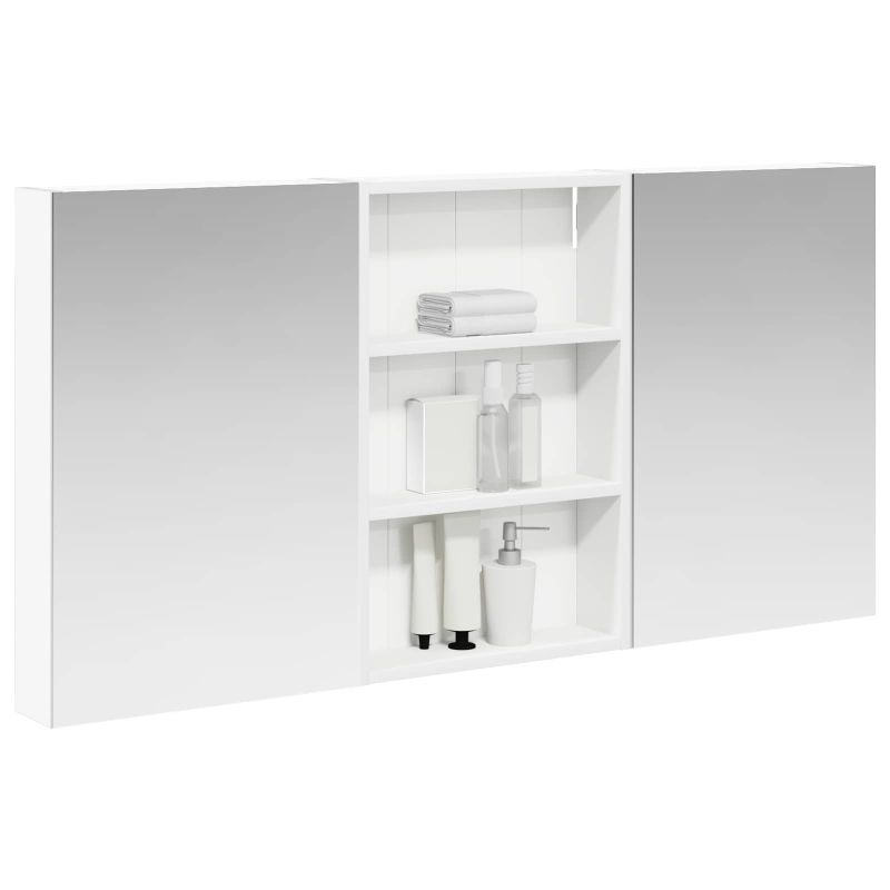 Този модерен банен комплект е олицетворение на стилната изтънченост, съчетавайки атрактивен дизайн с практическа функционалност. Проектиран за съвременния собственик на жилище, той действа както като шкаф за съхранение, така и като стилен акцент, който лесно се вписва в всяка баня. Осигурявайки достатъчно пространство с конфигурацията на стенния си дизайн, той спестява място на пода и позволява лесен достъп до основните неща. Комплектът подобрява атмосферата на банята с двупосочното огледало и LED осветление, създавайки удобна и организирана среда за ежедневните ритуали. Инженерна дървесина: Този шкаф е изработен от инженерна дървесина, позната с отличната си стабилност и издръжливост. Материалът е устойчив на деформация и повреди, осигурявайки дълготрайно парче за ежедневна употреба в банята. Гладкото му покритие придава елегантен вид, който е лесен за поддръжка. Простор за съхранение: Проектиран за максимална полезност, този шкаф предлага голямо пространство с множество рафтове и врати с панти. Добре обмисленото разположение позволява удобно организиране на санитарни принадлежности, осигурявайки всичко на ръка. Икономичният му дизайн повишава функционалността на банята, намалявайки безредиците. Инновативно двупосочно огледало: Тази уникална функция предлага уединение и видимост, а външната страна действа като стандартно огледало, докато вътрешната повърхност позволява дискретно наблюдение. Тази комбинация добавя стил и естетика в съвременните интериори. Ефективно LED осветление: С регулируеми LED ленти, захранвани от USB, шкафът осветява пространството с ярко и енергийно-ефективно осветление, което е особено приятно през нощта. Лесна поддръжка: Поддържането на този шкаф е супер лесно. Препоръчително е да използвате мек плат за почистване, а силните химикали да се избягват, за да се запази целостта на материала.