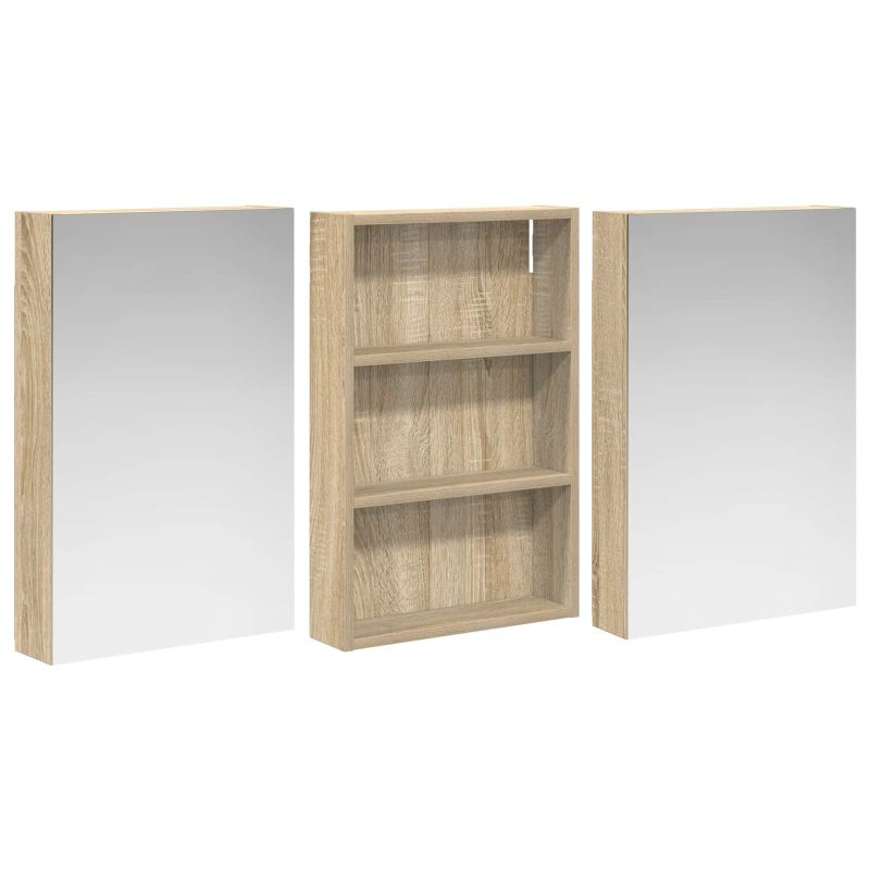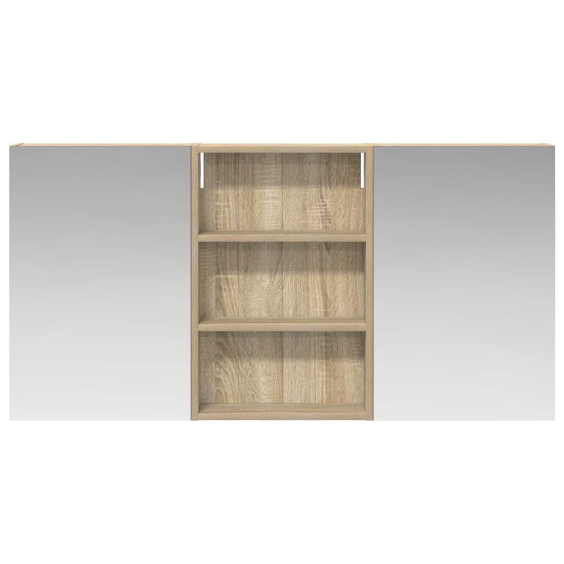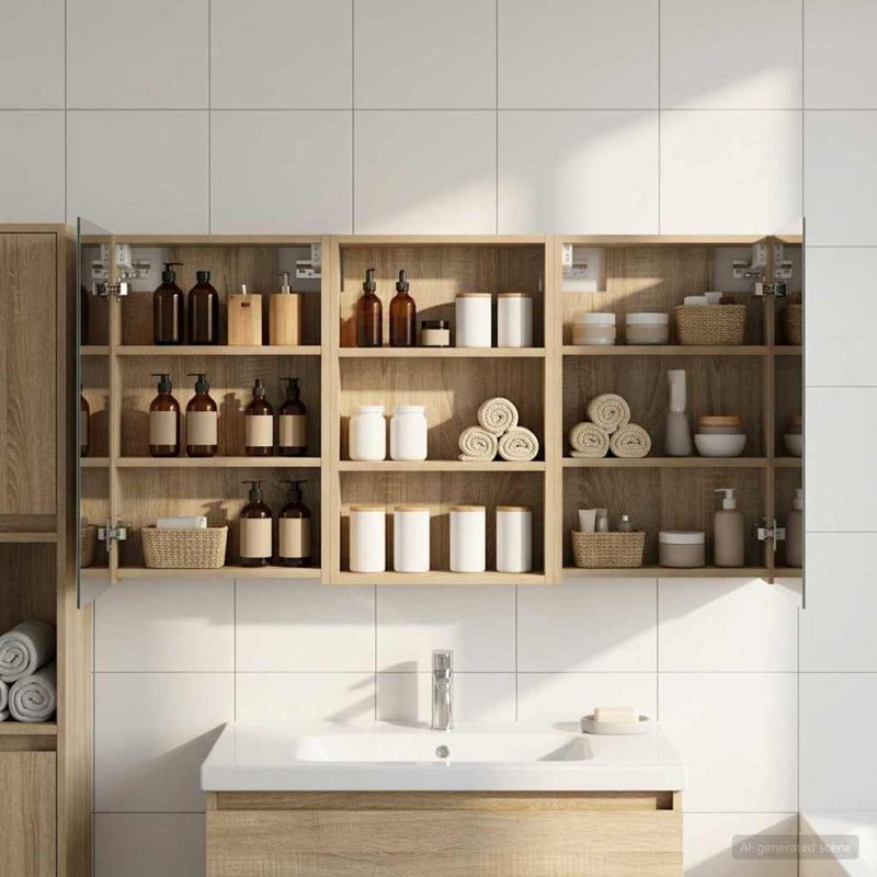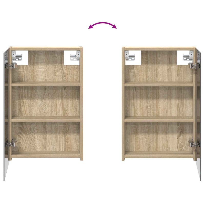 Този модерен банен комплект е олицетворение на стилната изтънченост, съчетавайки атрактивен дизайн с практическа функционалност. Проектиран за съвременния собственик на жилище, той действа както като шкаф за съхранение, така и като стилен акцент, който лесно се вписва в всяка баня. Осигурявайки достатъчно пространство с конфигурацията на стенния си дизайн, той спестява място на пода и позволява лесен достъп до основните неща. Комплектът подобрява атмосферата на банята с двупосочното огледало и LED осветление, създавайки удобна и организирана среда за ежедневните ритуали. Инженерна дървесина: Този шкаф е изработен от инженерна дървесина, позната с отличната си стабилност и издръжливост. Материалът е устойчив на деформация и повреди, осигурявайки дълготрайно парче за ежедневна употреба в банята. Гладкото му покритие придава елегантен вид, който е лесен за поддръжка. Простор за съхранение: Проектиран за максимална полезност, този шкаф предлага голямо пространство с множество рафтове и врати с панти. Добре обмисленото разположение позволява удобно организиране на санитарни принадлежности, осигурявайки всичко на ръка. Икономичният му дизайн повишава функционалността на банята, намалявайки безредиците. Инновативно двупосочно огледало: Тази уникална функция предлага уединение и видимост, а външната страна действа като стандартно огледало, докато вътрешната повърхност позволява дискретно наблюдение. Тази комбинация добавя стил и естетика в съвременните интериори. Ефективно LED осветление: С регулируеми LED ленти, захранвани от USB, шкафът осветява пространството с ярко и енергийно-ефективно осветление, което е особено приятно през нощта. Лесна поддръжка: Поддържането на този шкаф е супер лесно. Препоръчително е да използвате мек плат за почистване, а силните химикали да се избягват, за да се запази целостта на материала.