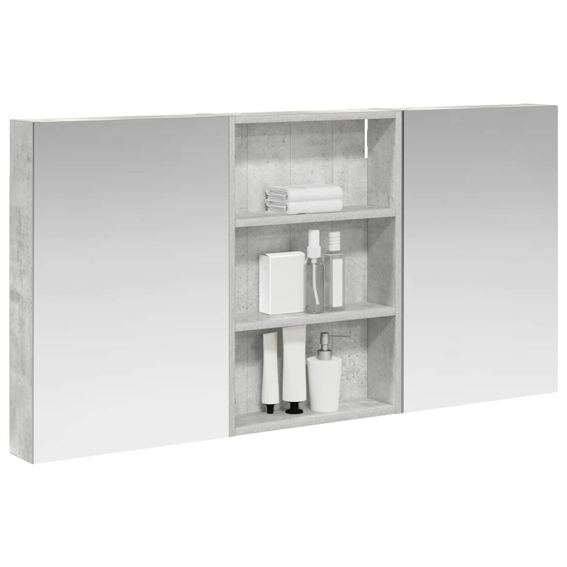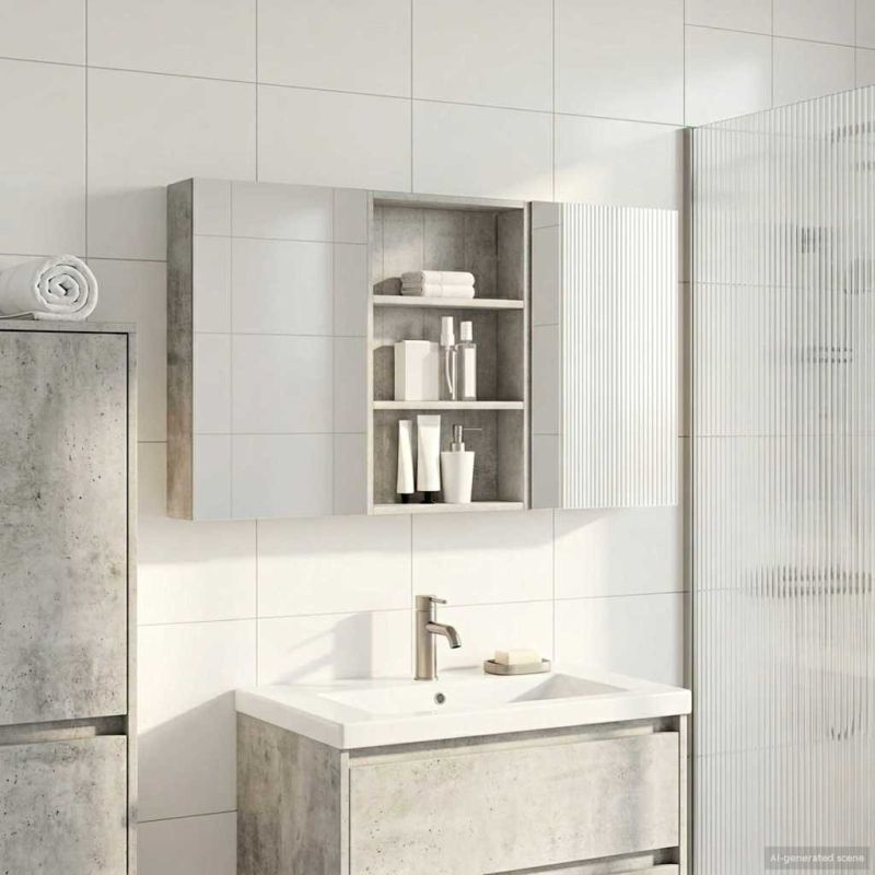 Този модерен банен комплект е олицетворение на стилната изтънченост, съчетавайки атрактивен дизайн с практическа функционалност. Проектиран за съвременния собственик на жилище, той действа както като шкаф за съхранение, така и като стилен акцент, който лесно се вписва в всяка баня. Осигурявайки достатъчно пространство с конфигурацията на стенния си дизайн, той спестява място на пода и позволява лесен достъп до основните неща. Комплектът подобрява атмосферата на банята с двупосочното огледало и LED осветление, създавайки удобна и организирана среда за ежедневните ритуали. Инженерна дървесина: Този шкаф е изработен от инженерна дървесина, позната с отличната си стабилност и издръжливост. Материалът е устойчив на деформация и повреди, осигурявайки дълготрайно парче за ежедневна употреба в банята. Гладкото му покритие придава елегантен вид, който е лесен за поддръжка. Простор за съхранение: Проектиран за максимална полезност, този шкаф предлага голямо пространство с множество рафтове и врати с панти. Добре обмисленото разположение позволява удобно организиране на санитарни принадлежности, осигурявайки всичко на ръка. Икономичният му дизайн повишава функционалността на банята, намалявайки безредиците. Инновативно двупосочно огледало: Тази уникална функция предлага уединение и видимост, а външната страна действа като стандартно огледало, докато вътрешната повърхност позволява дискретно наблюдение. Тази комбинация добавя стил и естетика в съвременните интериори. Ефективно LED осветление: С регулируеми LED ленти, захранвани от USB, шкафът осветява пространството с ярко и енергийно-ефективно осветление, което е особено приятно през нощта. Лесна поддръжка: Поддържането на този шкаф е супер лесно. Препоръчително е да използвате мек плат за почистване, а силните химикали да се избягват, за да се запази целостта на материала.