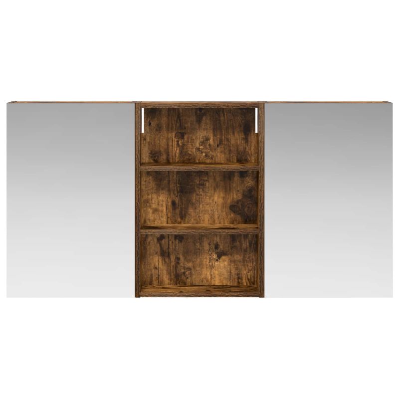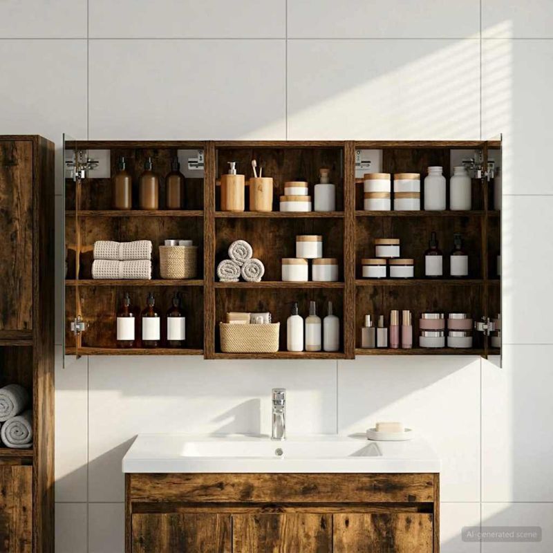 Този модерен банен комплект е олицетворение на стилната изтънченост, съчетавайки атрактивен дизайн с практическа функционалност. Проектиран за съвременния собственик на жилище, той действа както като шкаф за съхранение, така и като стилен акцент, който лесно се вписва в всяка баня. Осигурявайки достатъчно пространство с конфигурацията на стенния си дизайн, той спестява място на пода и позволява лесен достъп до основните неща. Комплектът подобрява атмосферата на банята с двупосочното огледало и LED осветление, създавайки удобна и организирана среда за ежедневните ритуали. Инженерна дървесина: Този шкаф е изработен от инженерна дървесина, позната с отличната си стабилност и издръжливост. Материалът е устойчив на деформация и повреди, осигурявайки дълготрайно парче за ежедневна употреба в банята. Гладкото му покритие придава елегантен вид, който е лесен за поддръжка. Простор за съхранение: Проектиран за максимална полезност, този шкаф предлага голямо пространство с множество рафтове и врати с панти. Добре обмисленото разположение позволява удобно организиране на санитарни принадлежности, осигурявайки всичко на ръка. Икономичният му дизайн повишава функционалността на банята, намалявайки безредиците. Инновативно двупосочно огледало: Тази уникална функция предлага уединение и видимост, а външната страна действа като стандартно огледало, докато вътрешната повърхност позволява дискретно наблюдение. Тази комбинация добавя стил и естетика в съвременните интериори. Ефективно LED осветление: С регулируеми LED ленти, захранвани от USB, шкафът осветява пространството с ярко и енергийно-ефективно осветление, което е особено приятно през нощта. Лесна поддръжка: Поддържането на този шкаф е супер лесно. Препоръчително е да използвате мек плат за почистване, а силните химикали да се избягват, за да се запази целостта на материала.