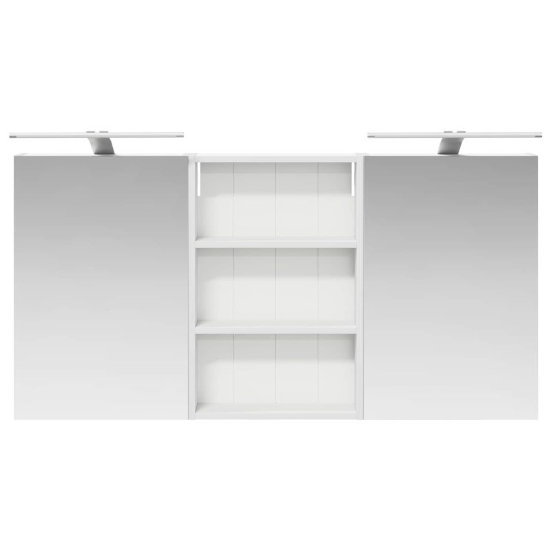 Този модерен банен комплект е олицетворение на стилната изтънченост, съчетавайки атрактивен дизайн с практическа функционалност. Проектиран за съвременния собственик на жилище, той действа както като шкаф за съхранение, така и като стилен акцент, който лесно се вписва в всяка баня. Осигурявайки достатъчно пространство с конфигурацията на стенния си дизайн, той спестява място на пода и позволява лесен достъп до основните неща. Комплектът подобрява атмосферата на банята с двупосочното огледало и LED осветление, създавайки удобна и организирана среда за ежедневните ритуали. Инженерна дървесина: Този шкаф е изработен от инженерна дървесина, позната с отличната си стабилност и издръжливост. Материалът е устойчив на деформация и повреди, осигурявайки дълготрайно парче за ежедневна употреба в банята. Гладкото му покритие придава елегантен вид, който е лесен за поддръжка. Простор за съхранение: Проектиран за максимална полезност, този шкаф предлага голямо пространство с множество рафтове и врати с панти. Добре обмисленото разположение позволява удобно организиране на санитарни принадлежности, осигурявайки всичко на ръка. Икономичният му дизайн повишава функционалността на банята, намалявайки безредиците. Инновативно двупосочно огледало: Тази уникална функция предлага уединение и видимост, а външната страна действа като стандартно огледало, докато вътрешната повърхност позволява дискретно наблюдение. Тази комбинация добавя стил и естетика в съвременните интериори. Ефективно LED осветление: С регулируеми LED ленти, захранвани от USB, шкафът осветява пространството с ярко и енергийно-ефективно осветление, което е особено приятно през нощта. Лесна поддръжка: Поддържането на този шкаф е супер лесно. Препоръчително е да използвате мек плат за почистване, а силните химикали да се избягват, за да се запази целостта на материала. Моля, обърнете внимание, че трябва да използвате само сертифициран вход DC 5V. По-високото напрежение може да доведе до прегряване и да повреди устройството, както и до потенциален риск от прегряване и пожар. Не свързвайте този продукт към захранване, различно от описаното в ръководството, на табелката с името или изрично препоръчано от vidaXL. Този уред не трябва да се използва от деца под 15 години, както и от лица с намалени физически, сетивни или умствени способности или с липса на опит и познания относно използването на електронни уреди. Електричеството е опасно. Повредите и неправилният монтаж, употреба или промяна (подмяна на отделни компоненти) могат да доведат до повреда на уреда , което да доведе до токов удар и опасност за потребителя. Не използвайте този продукт във взривоопасна атмосфера, като например при наличие на запалими течности, газове и прах, или при температура над 50 градуса по Целзий или повече. Не включвайте продукта, ако свързващият кабел или захранването са видимо повредени. Ако външният гъвкав кабел или захранващ кабел на това осветително тяло е повреден, той трябва да бъде заменен изключително от производителя или негов сервизен агент, или от подобно квалифицирано лице, за да се избегне опасност. Изключете захранването по време на монтажа и поддръжката. Уверете се, че крушките са изстинали. Светлинният източник на това осветително тяло не може да се заменя; когато светлинният източник д