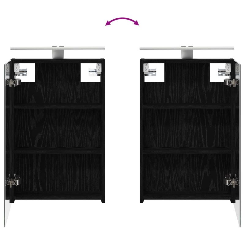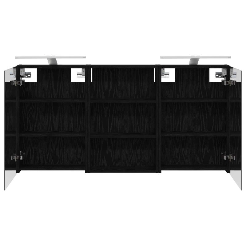 Този модерен банен комплект е олицетворение на стилната изтънченост, съчетавайки атрактивен дизайн с практическа функционалност. Проектиран за съвременния собственик на жилище, той действа както като шкаф за съхранение, така и като стилен акцент, който лесно се вписва в всяка баня. Осигурявайки достатъчно пространство с конфигурацията на стенния си дизайн, той спестява място на пода и позволява лесен достъп до основните неща. Комплектът подобрява атмосферата на банята с двупосочното огледало и LED осветление, създавайки удобна и организирана среда за ежедневните ритуали. Инженерна дървесина: Този шкаф е изработен от инженерна дървесина, позната с отличната си стабилност и издръжливост. Материалът е устойчив на деформация и повреди, осигурявайки дълготрайно парче за ежедневна употреба в банята. Гладкото му покритие придава елегантен вид, който е лесен за поддръжка. Простор за съхранение: Проектиран за максимална полезност, този шкаф предлага голямо пространство с множество рафтове и врати с панти. Добре обмисленото разположение позволява удобно организиране на санитарни принадлежности, осигурявайки всичко на ръка. Икономичният му дизайн повишава функционалността на банята, намалявайки безредиците. Инновативно двупосочно огледало: Тази уникална функция предлага уединение и видимост, а външната страна действа като стандартно огледало, докато вътрешната повърхност позволява дискретно наблюдение. Тази комбинация добавя стил и естетика в съвременните интериори. Ефективно LED осветление: С регулируеми LED ленти, захранвани от USB, шкафът осветява пространството с ярко и енергийно-ефективно осветление, което е особено приятно през нощта. Лесна поддръжка: Поддържането на този шкаф е супер лесно. Препоръчително е да използвате мек плат за почистване, а силните химикали да се избягват, за да се запази целостта на материала. Моля, обърнете внимание, че трябва да използвате само сертифициран вход DC 5V. По-високото напрежение може да доведе до прегряване и да повреди устройството, както и до потенциален риск от прегряване и пожар. Не свързвайте този продукт към захранване, различно от описаното в ръководството, на табелката с името или изрично препоръчано от vidaXL. Този уред не трябва да се използва от деца под 15 години, както и от лица с намалени физически, сетивни или умствени способности или с липса на опит и познания относно използването на електронни уреди. Електричеството е опасно. Повредите и неправилният монтаж, употреба или промяна (подмяна на отделни компоненти) могат да доведат до повреда на уреда , което да доведе до токов удар и опасност за потребителя. Не използвайте този продукт във взривоопасна атмосфера, като например при наличие на запалими течности, газове и прах, или при температура над 50 градуса по Целзий или повече. Не включвайте продукта, ако свързващият кабел или захранването са видимо повредени. Ако външният гъвкав кабел или захранващ кабел на това осветително тяло е повреден, той трябва да бъде заменен изключително от производителя или негов сервизен агент, или от подобно квалифицирано лице, за да се избегне опасност. Изключете захранването по време на монтажа и поддръжката. Уверете се, че крушките са изстинали. Светлинният източник на това осветително тяло не може да се заменя; когато светлинният източник д