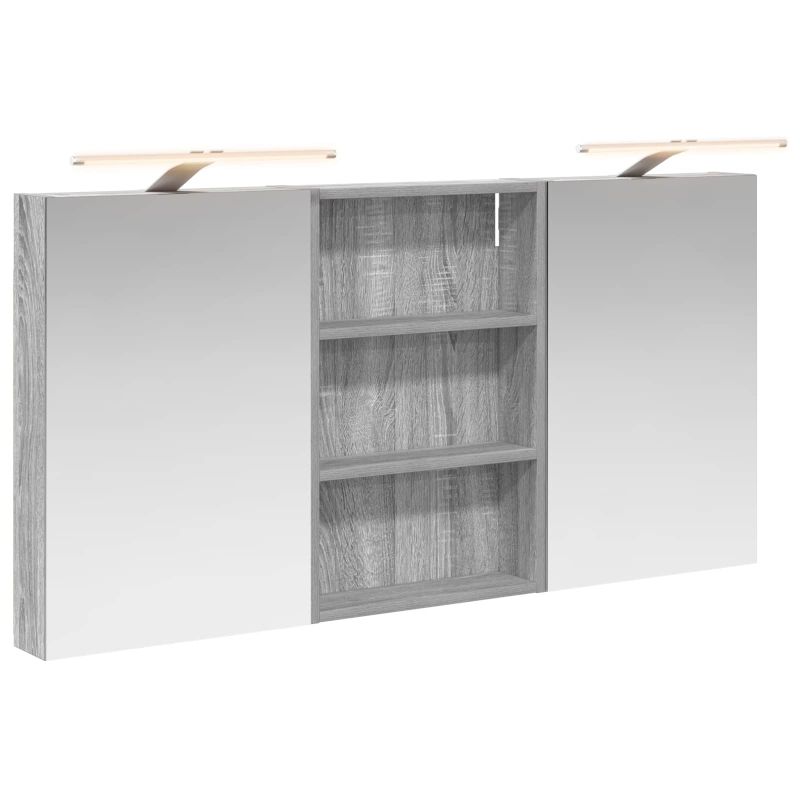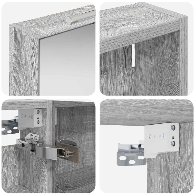 Този модерен банен комплект е олицетворение на стилната изтънченост, съчетавайки атрактивен дизайн с практическа функционалност. Проектиран за съвременния собственик на жилище, той действа както като шкаф за съхранение, така и като стилен акцент, който лесно се вписва в всяка баня. Осигурявайки достатъчно пространство с конфигурацията на стенния си дизайн, той спестява място на пода и позволява лесен достъп до основните неща. Комплектът подобрява атмосферата на банята с двупосочното огледало и LED осветление, създавайки удобна и организирана среда за ежедневните ритуали. Инженерна дървесина: Този шкаф е изработен от инженерна дървесина, позната с отличната си стабилност и издръжливост. Материалът е устойчив на деформация и повреди, осигурявайки дълготрайно парче за ежедневна употреба в банята. Гладкото му покритие придава елегантен вид, който е лесен за поддръжка. Простор за съхранение: Проектиран за максимална полезност, този шкаф предлага голямо пространство с множество рафтове и врати с панти. Добре обмисленото разположение позволява удобно организиране на санитарни принадлежности, осигурявайки всичко на ръка. Икономичният му дизайн повишава функционалността на банята, намалявайки безредиците. Инновативно двупосочно огледало: Тази уникална функция предлага уединение и видимост, а външната страна действа като стандартно огледало, докато вътрешната повърхност позволява дискретно наблюдение. Тази комбинация добавя стил и естетика в съвременните интериори. Ефективно LED осветление: С регулируеми LED ленти, захранвани от USB, шкафът осветява пространството с ярко и енергийно-ефективно осветление, което е особено приятно през нощта. Лесна поддръжка: Поддържането на този шкаф е супер лесно. Препоръчително е да използвате мек плат за почистване, а силните химикали да се избягват, за да се запази целостта на материала. Моля, обърнете внимание, че трябва да използвате само сертифициран вход DC 5V. По-високото напрежение може да доведе до прегряване и да повреди устройството, както и до потенциален риск от прегряване и пожар. Не свързвайте този продукт към захранване, различно от описаното в ръководството, на табелката с името или изрично препоръчано от vidaXL. Този уред не трябва да се използва от деца под 15 години, както и от лица с намалени физически, сетивни или умствени способности или с липса на опит и познания относно използването на електронни уреди. Електричеството е опасно. Повредите и неправилният монтаж, употреба или промяна (подмяна на отделни компоненти) могат да доведат до повреда на уреда , което да доведе до токов удар и опасност за потребителя. Не използвайте този продукт във взривоопасна атмосфера, като например при наличие на запалими течности, газове и прах, или при температура над 50 градуса по Целзий или повече. Не включвайте продукта, ако свързващият кабел или захранването са видимо повредени. Ако външният гъвкав кабел или захранващ кабел на това осветително тяло е повреден, той трябва да бъде заменен изключително от производителя или негов сервизен агент, или от подобно квалифицирано лице, за да се избегне опасност. Изключете захранването по време на монтажа и поддръжката. Уверете се, че крушките са изстинали. Светлинният източник на това осветително тяло не може да се заменя; когато светлинният източник д