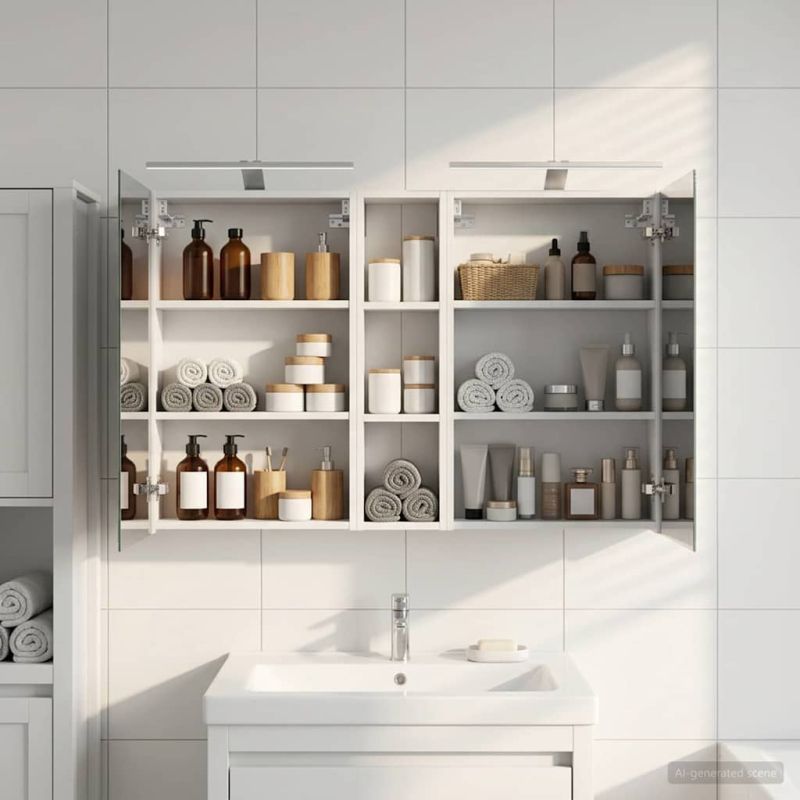 Този модерен банен комплект е олицетворение на стилната изтънченост, съчетавайки атрактивен дизайн с практическа функционалност. Проектиран за съвременния собственик на жилище, той действа както като шкаф за съхранение, така и като стилен акцент, който лесно се вписва в всяка баня. Осигурявайки достатъчно пространство с конфигурацията на стенния си дизайн, той спестява място на пода и позволява лесен достъп до основните неща. Комплектът подобрява атмосферата на банята с двупосочното огледало и LED осветление, създавайки удобна и организирана среда за ежедневните ритуали. Инженерна дървесина: Този шкаф е изработен от инженерна дървесина, позната с отличната си стабилност и издръжливост. Материалът е устойчив на деформация и повреди, осигурявайки дълготрайно парче за ежедневна употреба в банята. Гладкото му покритие придава елегантен вид, който е лесен за поддръжка. Простор за съхранение: Проектиран за максимална полезност, този шкаф предлага голямо пространство с множество рафтове и врати с панти. Добре обмисленото разположение позволява удобно организиране на санитарни принадлежности, осигурявайки всичко на ръка. Икономичният му дизайн повишава функционалността на банята, намалявайки безредиците. Инновативно двупосочно огледало: Тази уникална функция предлага уединение и видимост, а външната страна действа като стандартно огледало, докато вътрешната повърхност позволява дискретно наблюдение. Тази комбинация добавя стил и естетика в съвременните интериори. Ефективно LED осветление: С регулируеми LED ленти, захранвани от USB, шкафът осветява пространството с ярко и енергийно-ефективно осветление, което е особено приятно през нощта. Лесна поддръжка: Поддържането на този шкаф е супер лесно. Препоръчително е да използвате мек плат за почистване, а силните химикали да се избягват, за да се запази целостта на материала. Моля, обърнете внимание, че трябва да използвате само сертифициран вход DC 5V. По-високото напрежение може да доведе до прегряване и да повреди устройството, както и до потенциален риск от прегряване и пожар. Не свързвайте този продукт към захранване, различно от описаното в ръководството, на табелката с името или изрично препоръчано от vidaXL. Този уред не трябва да се използва от деца под 15 години, както и от лица с намалени физически, сетивни или умствени способности или с липса на опит и познания относно използването на електронни уреди. Електричеството е опасно. Повредите и неправилният монтаж, употреба или промяна (подмяна на отделни компоненти) могат да доведат до повреда на уреда , което да доведе до токов удар и опасност за потребителя. Не използвайте този продукт във взривоопасна атмосфера, като например при наличие на запалими течности, газове и прах, или при температура над 50 градуса по Целзий или повече. Не включвайте продукта, ако свързващият кабел или захранването са видимо повредени. Ако външният гъвкав кабел или захранващ кабел на това осветително тяло е повреден, той трябва да бъде заменен изключително от производителя или негов сервизен агент, или от подобно квалифицирано лице, за да се избегне опасност. Изключете захранването по време на монтажа и поддръжката. Уверете се, че крушките са изстинали. Светлинният източник на това осветително тяло не може да се заменя; когато светлинният източник д
