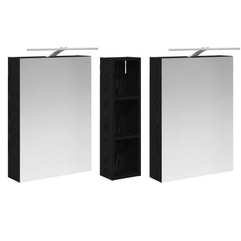 Този модерен банен комплект е олицетворение на стилната изтънченост, съчетавайки атрактивен дизайн с практическа функционалност. Проектиран за съвременния собственик на жилище, той действа както като шкаф за съхранение, така и като стилен акцент, който лесно се вписва в всяка баня. Осигурявайки достатъчно пространство с конфигурацията на стенния си дизайн, той спестява място на пода и позволява лесен достъп до основните неща. Комплектът подобрява атмосферата на банята с двупосочното огледало и LED осветление, създавайки удобна и организирана среда за ежедневните ритуали. Инженерна дървесина: Този шкаф е изработен от инженерна дървесина, позната с отличната си стабилност и издръжливост. Материалът е устойчив на деформация и повреди, осигурявайки дълготрайно парче за ежедневна употреба в банята. Гладкото му покритие придава елегантен вид, който е лесен за поддръжка. Простор за съхранение: Проектиран за максимална полезност, този шкаф предлага голямо пространство с множество рафтове и врати с панти. Добре обмисленото разположение позволява удобно организиране на санитарни принадлежности, осигурявайки всичко на ръка. Икономичният му дизайн повишава функционалността на банята, намалявайки безредиците. Инновативно двупосочно огледало: Тази уникална функция предлага уединение и видимост, а външната страна действа като стандартно огледало, докато вътрешната повърхност позволява дискретно наблюдение. Тази комбинация добавя стил и естетика в съвременните интериори. Ефективно LED осветление: С регулируеми LED ленти, захранвани от USB, шкафът осветява пространството с ярко и енергийно-ефективно осветление, което е особено приятно през нощта. Лесна поддръжка: Поддържането на този шкаф е супер лесно. Препоръчително е да използвате мек плат за почистване, а силните химикали да се избягват, за да се запази целостта на материала. Моля, обърнете внимание, че трябва да използвате само сертифициран вход DC 5V. По-високото напрежение може да доведе до прегряване и да повреди устройството, както и до потенциален риск от прегряване и пожар. Не свързвайте този продукт към захранване, различно от описаното в ръководството, на табелката с името или изрично препоръчано от vidaXL. Този уред не трябва да се използва от деца под 15 години, както и от лица с намалени физически, сетивни или умствени способности или с липса на опит и познания относно използването на електронни уреди. Електричеството е опасно. Повредите и неправилният монтаж, употреба или промяна (подмяна на отделни компоненти) могат да доведат до повреда на уреда , което да доведе до токов удар и опасност за потребителя. Не използвайте този продукт във взривоопасна атмосфера, като например при наличие на запалими течности, газове и прах, или при температура над 50 градуса по Целзий или повече. Не включвайте продукта, ако свързващият кабел или захранването са видимо повредени. Ако външният гъвкав кабел или захранващ кабел на това осветително тяло е повреден, той трябва да бъде заменен изключително от производителя или негов сервизен агент, или от подобно квалифицирано лице, за да се избегне опасност. Изключете захранването по време на монтажа и поддръжката. Уверете се, че крушките са изстинали. Светлинният източник на това осветително тяло не може да се заменя; когато светлинният източник д